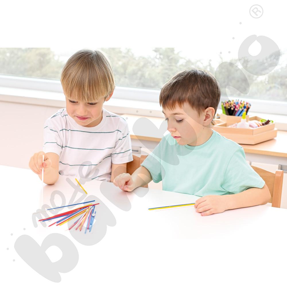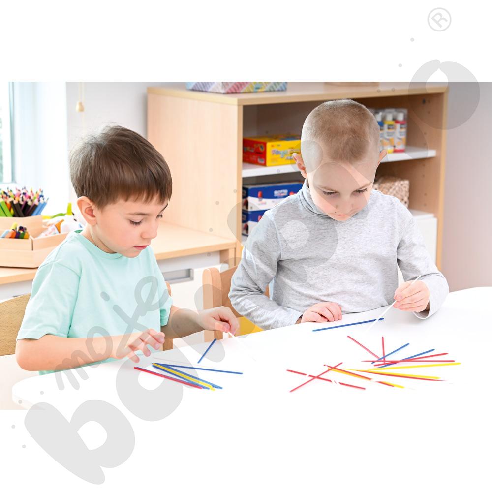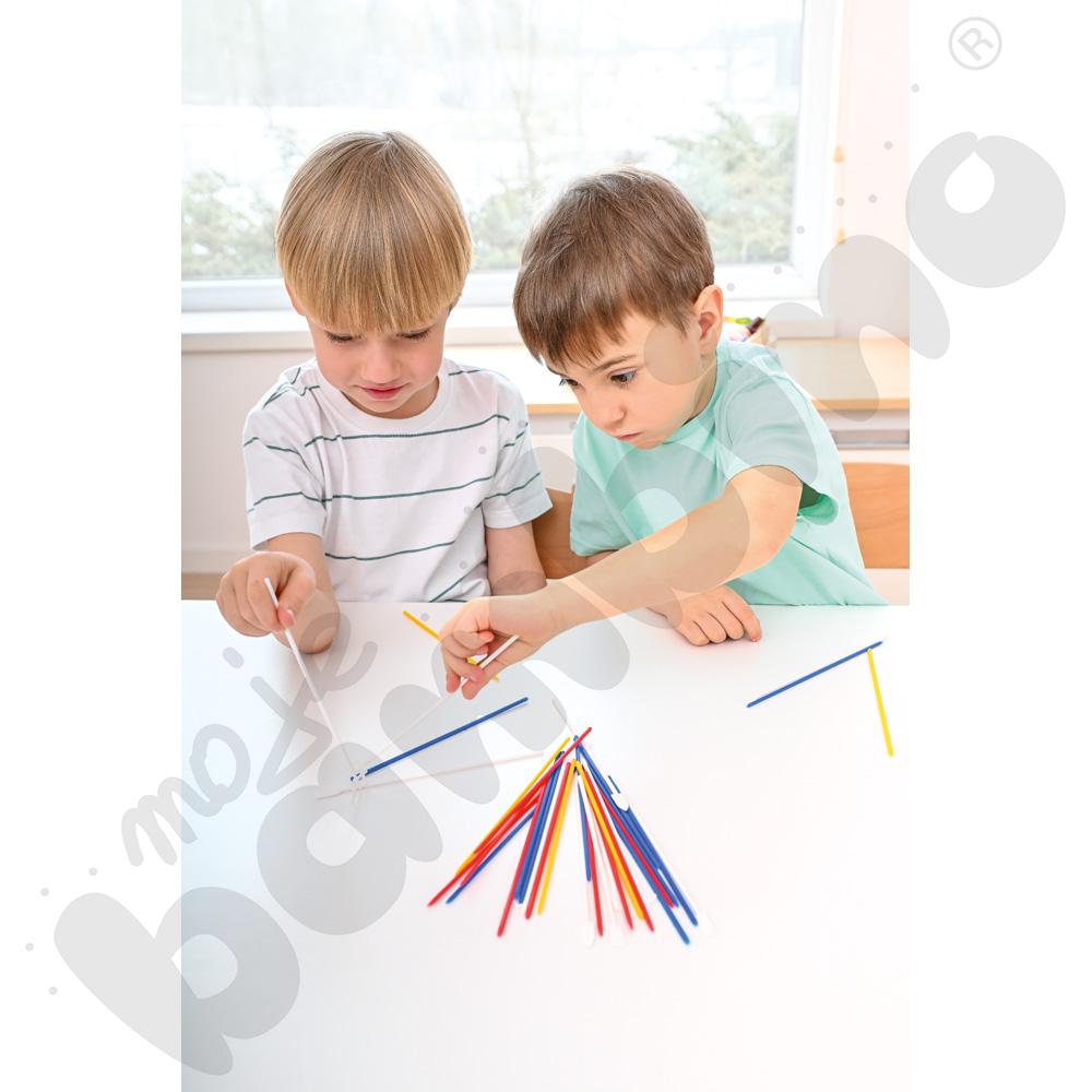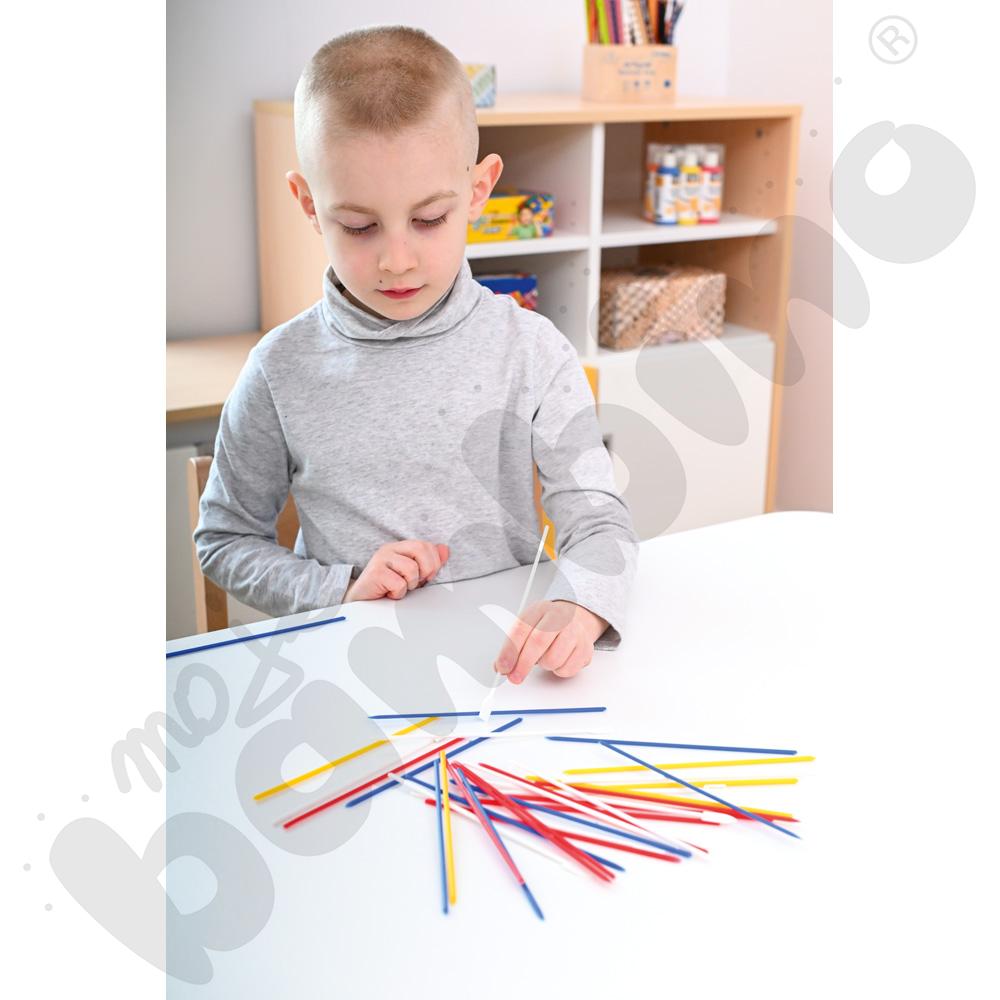 Plastikowy, kolorowy zestaw do gry w bierki. Bierki to gra zręcznościowa polegająca na zebraniu jak największej liczby punktów. Gracze kolejno wyciągają po jednym patyczku z rozsypanego stosu tak, aby nie poruszyć żadnej bierki poza jedną, którą chcą zebrać. • dł. bierki 16,5 cm • śr. bierki 0,3 cm • wym. opakowania: 18 x 4,7 x 2 cm. Zestaw zawiera: • 2 trójzęby po 25 pkt • 3 harpuny po 15 pkt • 3 wiosła po 10 pkt • 3 bosaki po 5 pkt • 24 oszczepy po 1 pkt