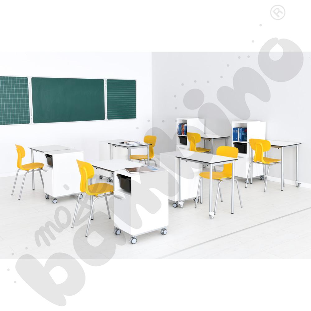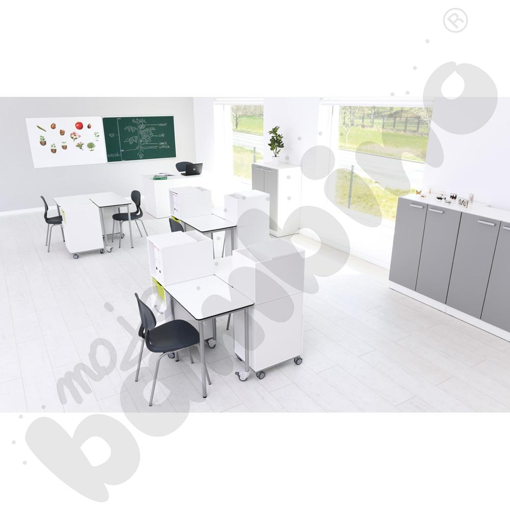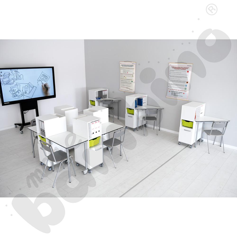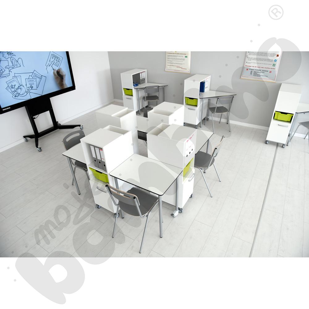 • Stoły easyMoove pomogą Ci łatwo stworzyć indywidualne środowisko nauki sprzyjające koncentracji. Salę lekcyjną można zaaranżować na różne sposoby. • Czyścić łagodnym środkiem czyszczącym