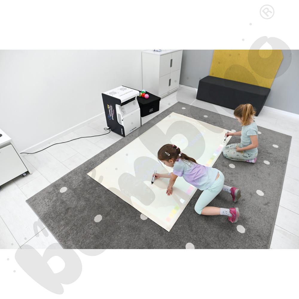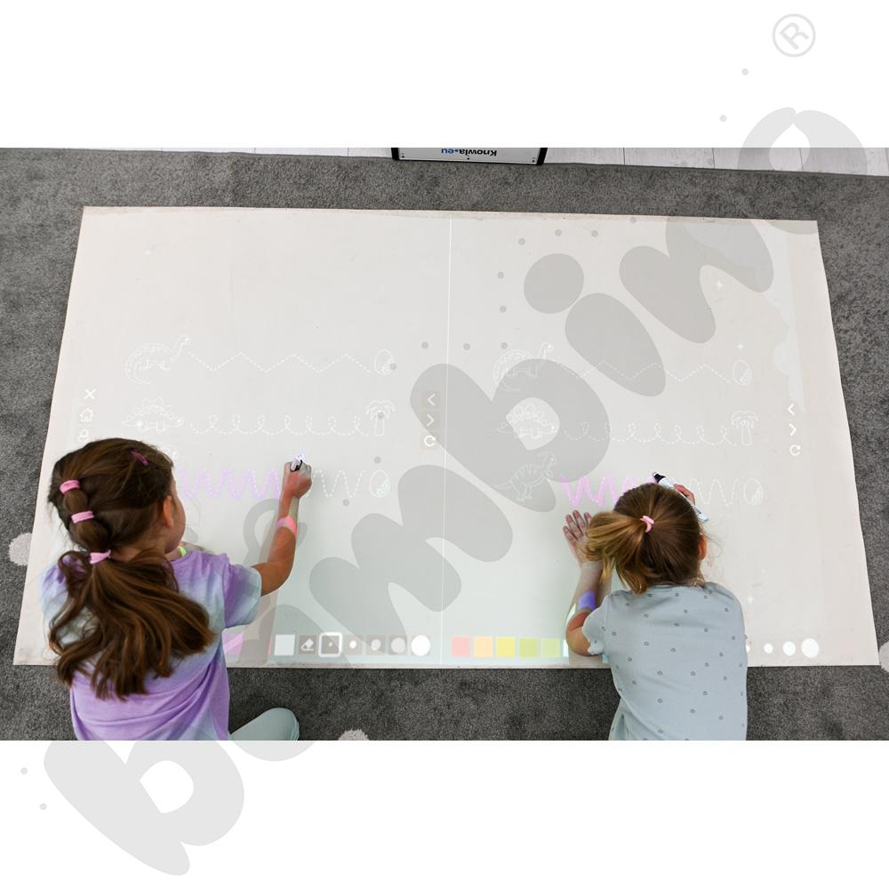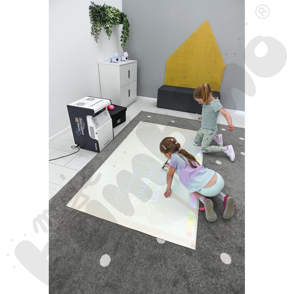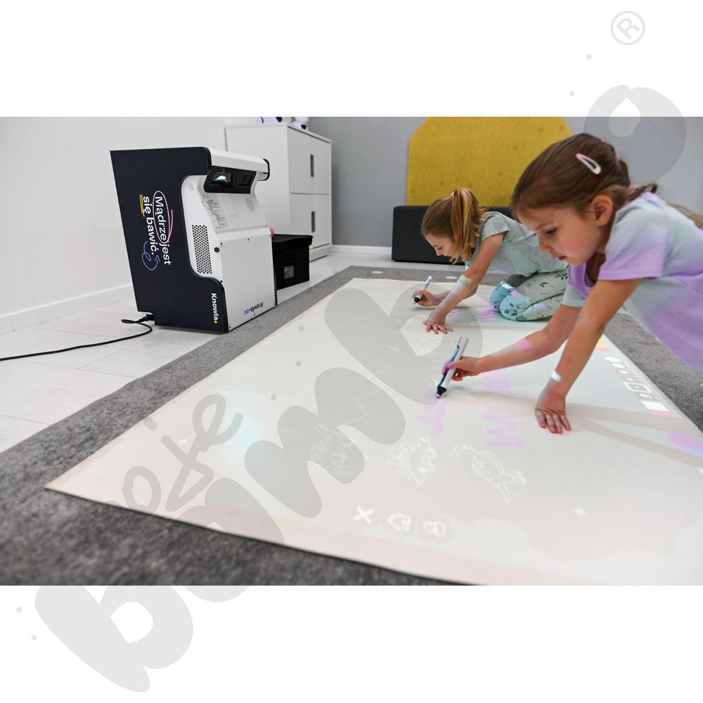 W przypadku użytkowania Knowla Box na podłodze pokrytej dywanem lub wykładziną zalecamy zakup Maty do Knowla Box (821115), która pełni funkcję ekranu projekcyjnego. Jest lekka, zwijana i niegniotąca. Wykonana z mocnej, zmywalnej tkaniny wolnej od ftalanów, tworzy gładką i jednolitą powierzchnię do wyświetlania obrazu z projektora.