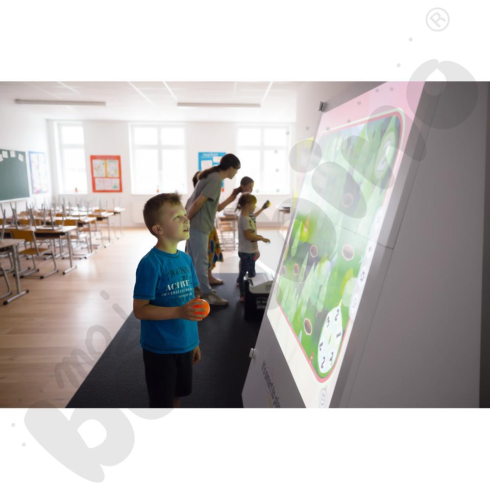 • Nauka i ruch: Interaktywność rozwiązania oraz angażujące aplikacje skutecznie motywują uczniów do udziału w zajęciach, pobudzając ich ciekawość oraz chęć zdobywania wiedzy. Dzięki ruchowi i działaniu w formie edukacyjnej zabawy dzieci aktywnie przyswajają informacje, rozwijając jednocześnie swoje umiejętności ruchowe oraz poznawcze.