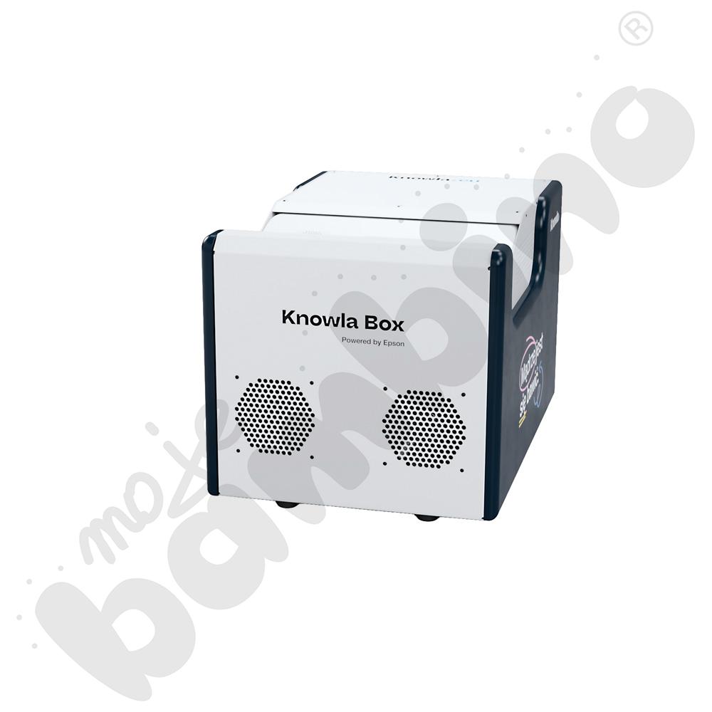 Knowla Box wyposażone jest w najwyższej jakości ultrakrótkoogniskowy, laserowy projektor Epson 760Wi (spełniający wymagania dyrektywy RoHS 2011/65/EU) umożliwia wyświetlanie wielkoformatowego obrazu na ścianie, jak i na podłodze – nawet w jasnych pomieszczeniach! To jedno z nielicznych urządzeń na świecie, które mogą być oznaczane symbolem "Powered by Epson". To gwarancja najwyższej jakości, która przekłada się na niezrównaną czystość obrazu i pełne bezpieczeństwo użytkowania.