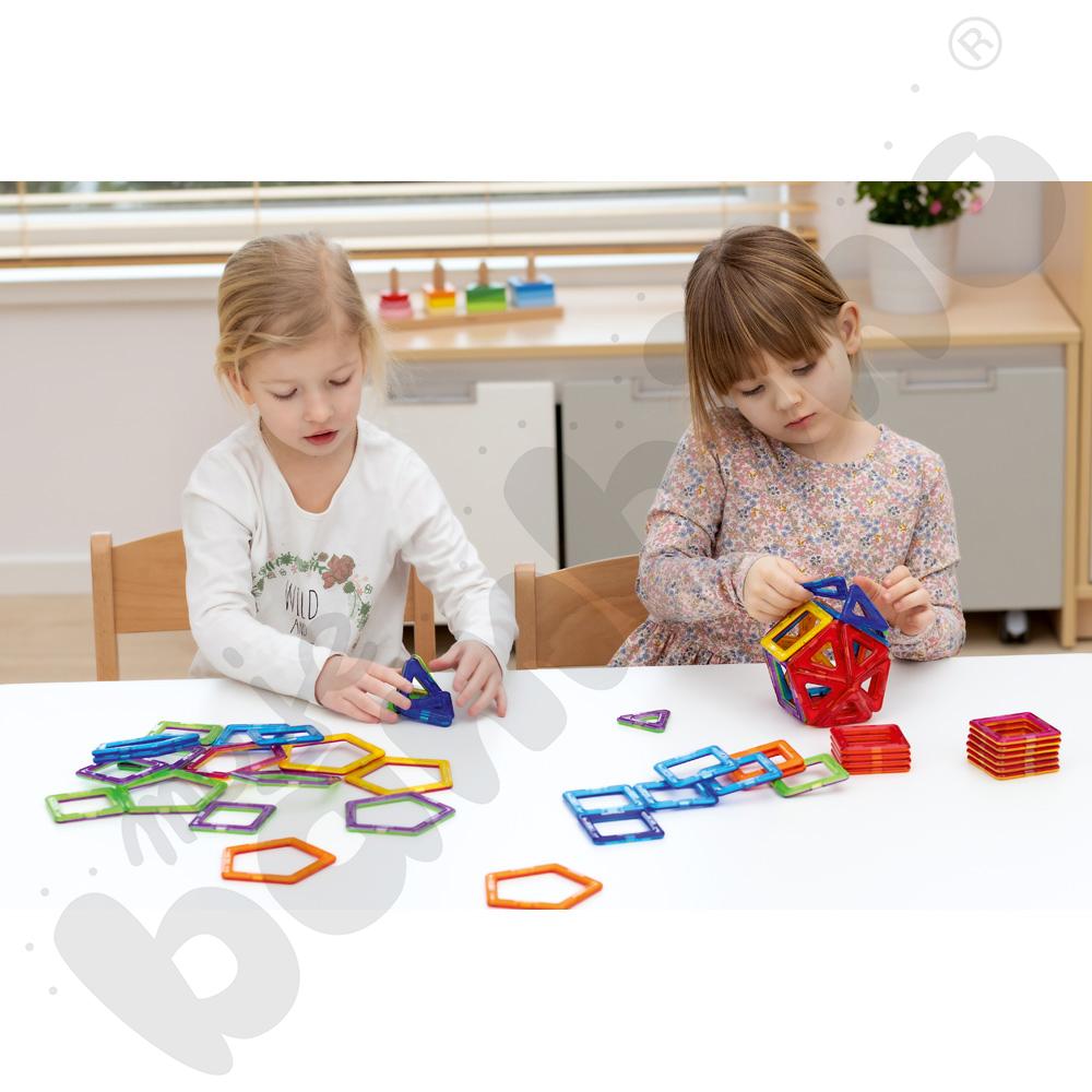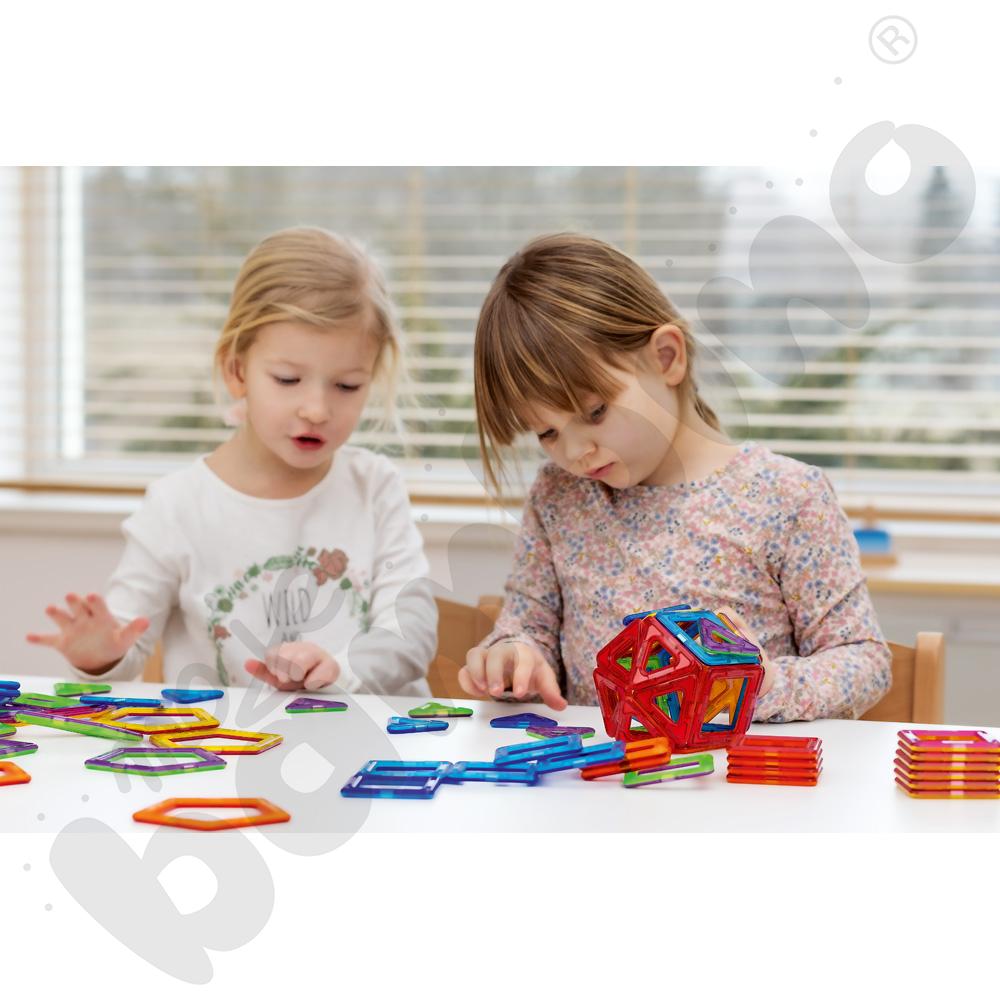 W skład zestawu wchodzi: 26 trójkątów, 24 kwadraty, 12 pięciokątów i instrukcja.
