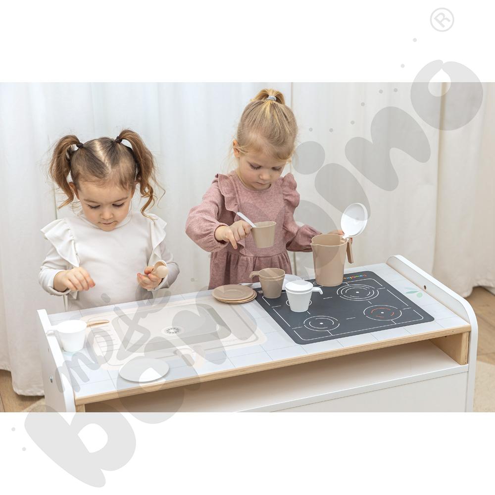 Serwis kawowy do zabawy w kawiarnię lub przyjęcie rozwija wyobraźnię, twórcze myślenie, koordynację wzrokowo-ruchową oraz wspiera rozwój społeczny i nawiązywanie relacji z rówieśnikami.
