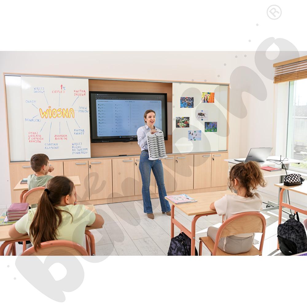 Inteligentna Klasa umożliwia prowadzenie interaktywnych lekcji bez komputerów i smarfonów dla uczniów.Zapewnia szereg zautomatyzowanych funkcji i pomagających w organizacji pracy na lekcji.