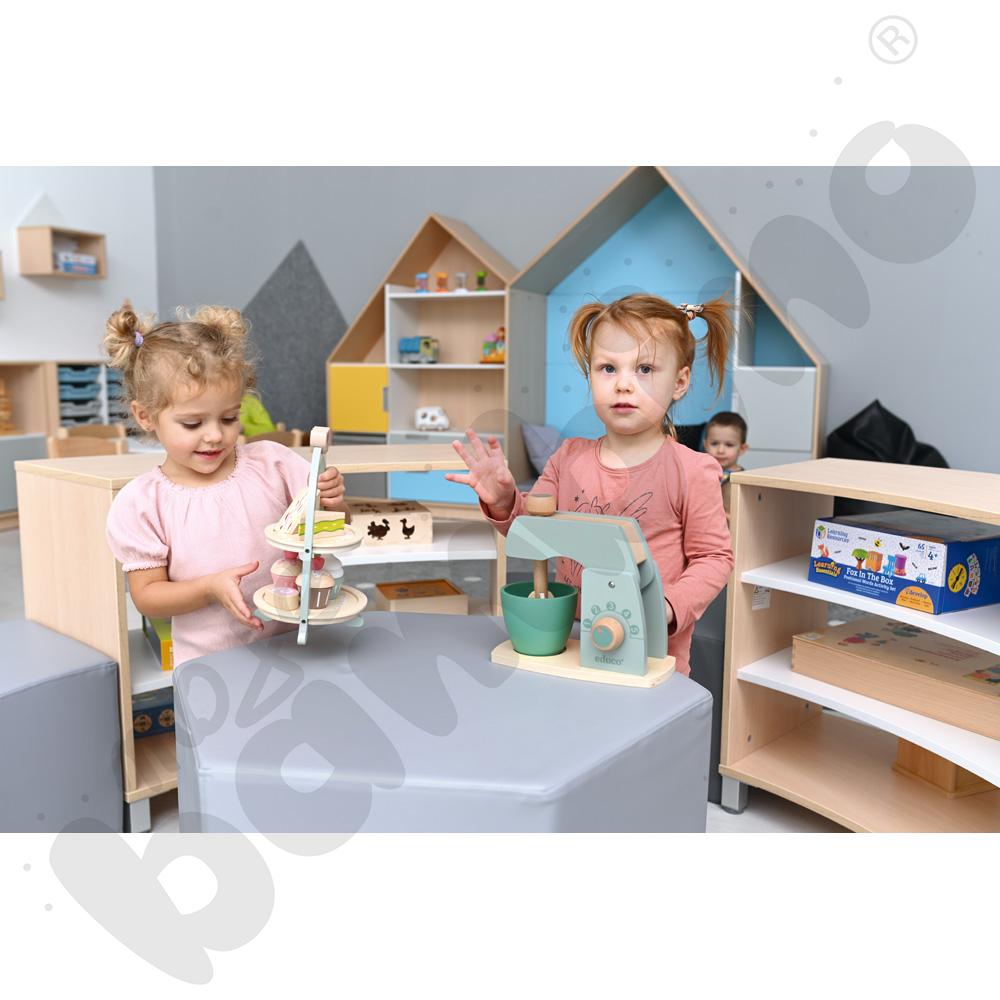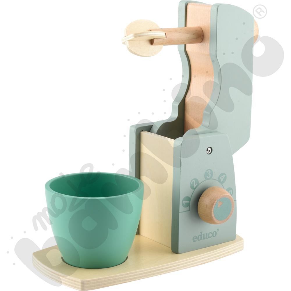 Drewniany mikser z misą doskonale sprawdzi się w kącikach kuchennych oraz podczas zabawy w dom. Aby zacząć miksować, wystarczy kręcić pokrętłem. Po skończonym miksowaniu należy podnieść ramię miksera i wyciągnąć misę. • wym. całkowite 12,5 x 23 x 24 cm • dł. mieszadła 9 cm • wym. miski śr. dolna 6,5 cm, śr górna 10 cm, wys. 8 cm