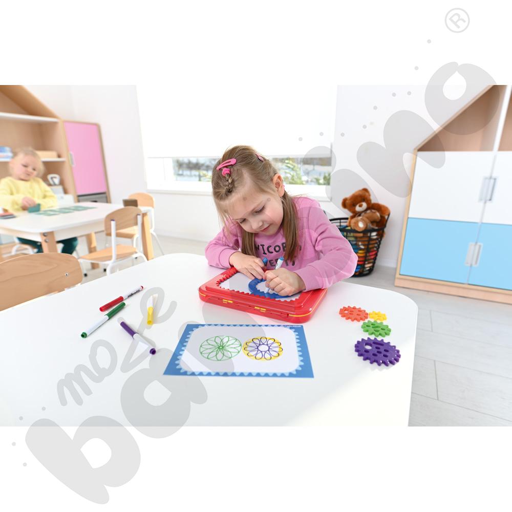 Narzędzie do tworzenia geometrycznych wzorów. Łączy elementy sztuki i matematyki, umożliwiając tworzenie skomplikowanych, symetrycznych mandali. Rozwija zdolności manualne, koordynację ręka-oko oraz kreatywność i wyobraźnię.