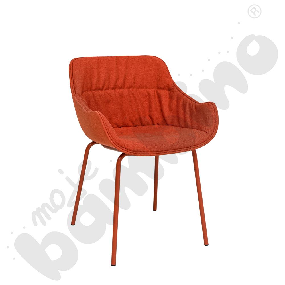 Komfortowe krzesło kubełkowe, tapicerowane tkaniną z marszczeniem (100% poliester, odporność na ścieranie 100 000). Kubełek krzesełka jest miękki (pianka cięta 40 kg/m3). Nogi z metalu (malowanego proszkowo) o śr. 18 mm, są zakończone stopkami z tworzywa.