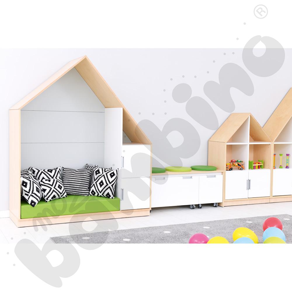 Wygodny materac uzupełniający szafkę-domek Quadro (099342-099353, 099342W-099353W), dostępny w 3 kolorach. Wykonany z pianki, pokryty trwałą tkaniną, niezawierającą ftalanów, łatwą do utrzymania w czystości.