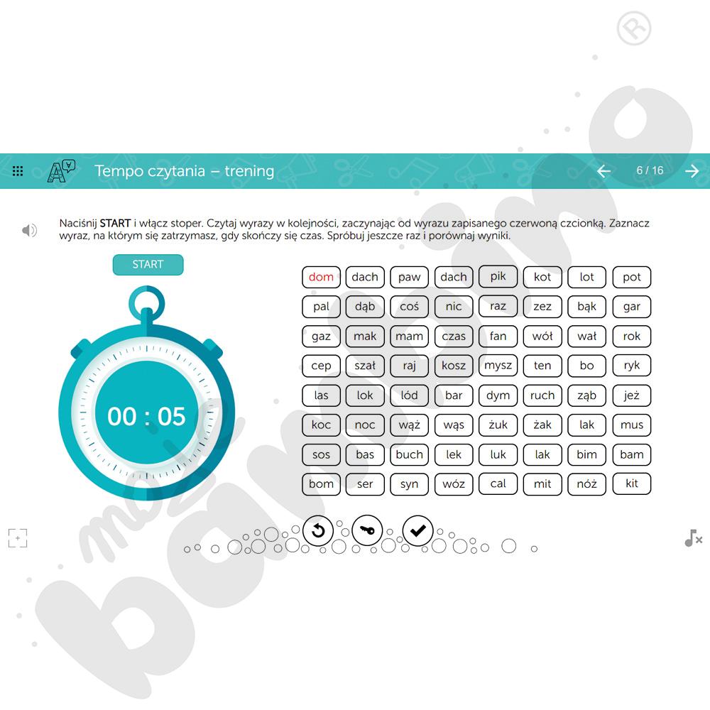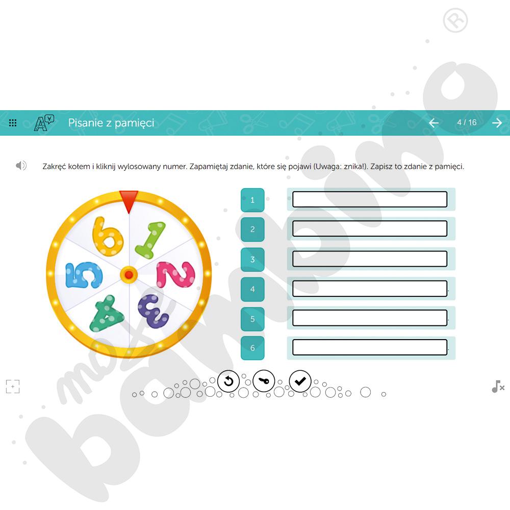 ● interaktywne zadania rozwijające funkcje percepcyjno-motoryczne, w tym obszerne zestawy autorskich i zwalidowanych arkuszy rozpoznania ryzyka lub symptomów specyficznych trudności w uczeniu się, a także szkolną diagnozę pedagogiczną,