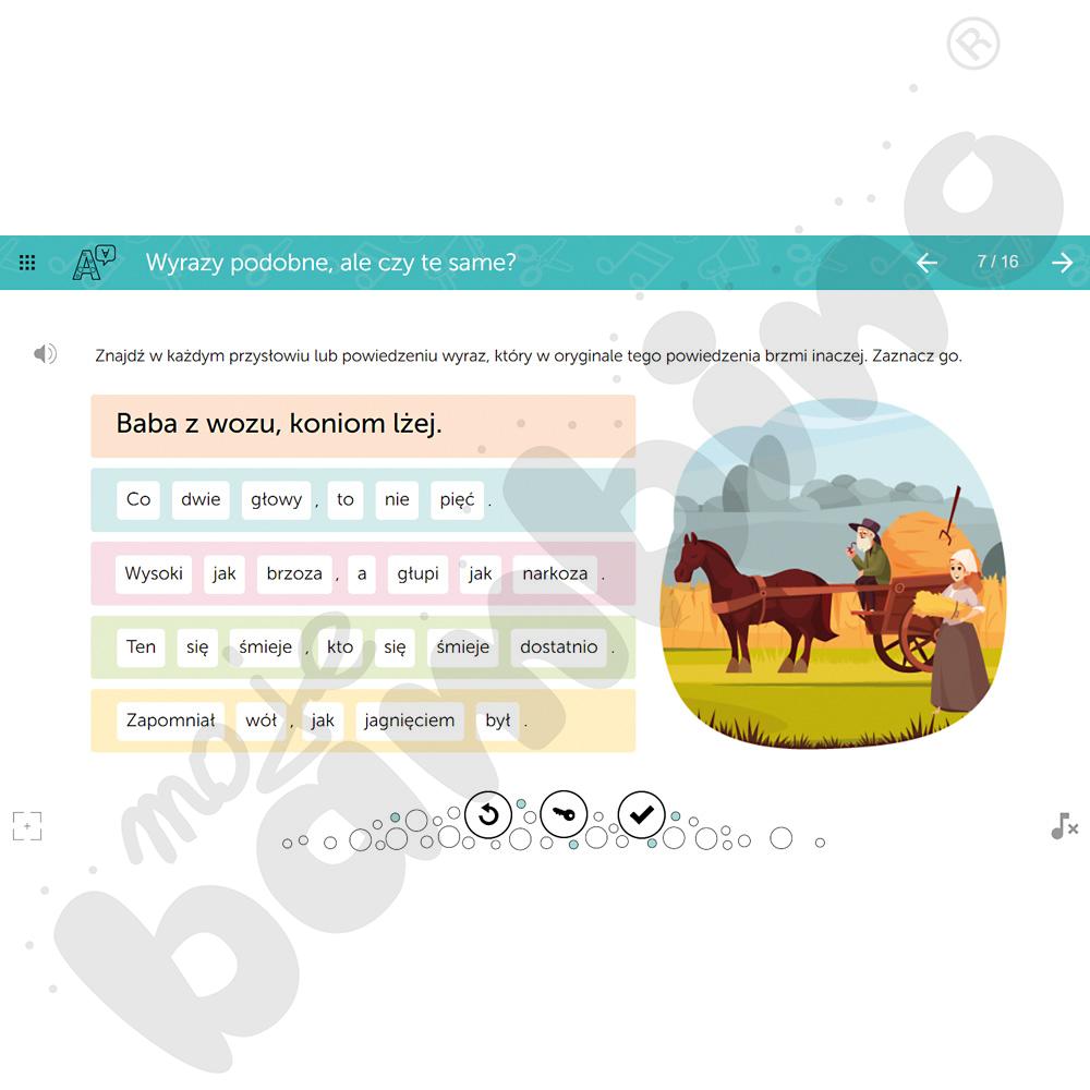● Blisko 2500 ekranów interaktywnych i 400 kart pracy do wydruku, przewodnik metodyczny oraz zestaw materiałów dodatkowych w jednym pudełku.