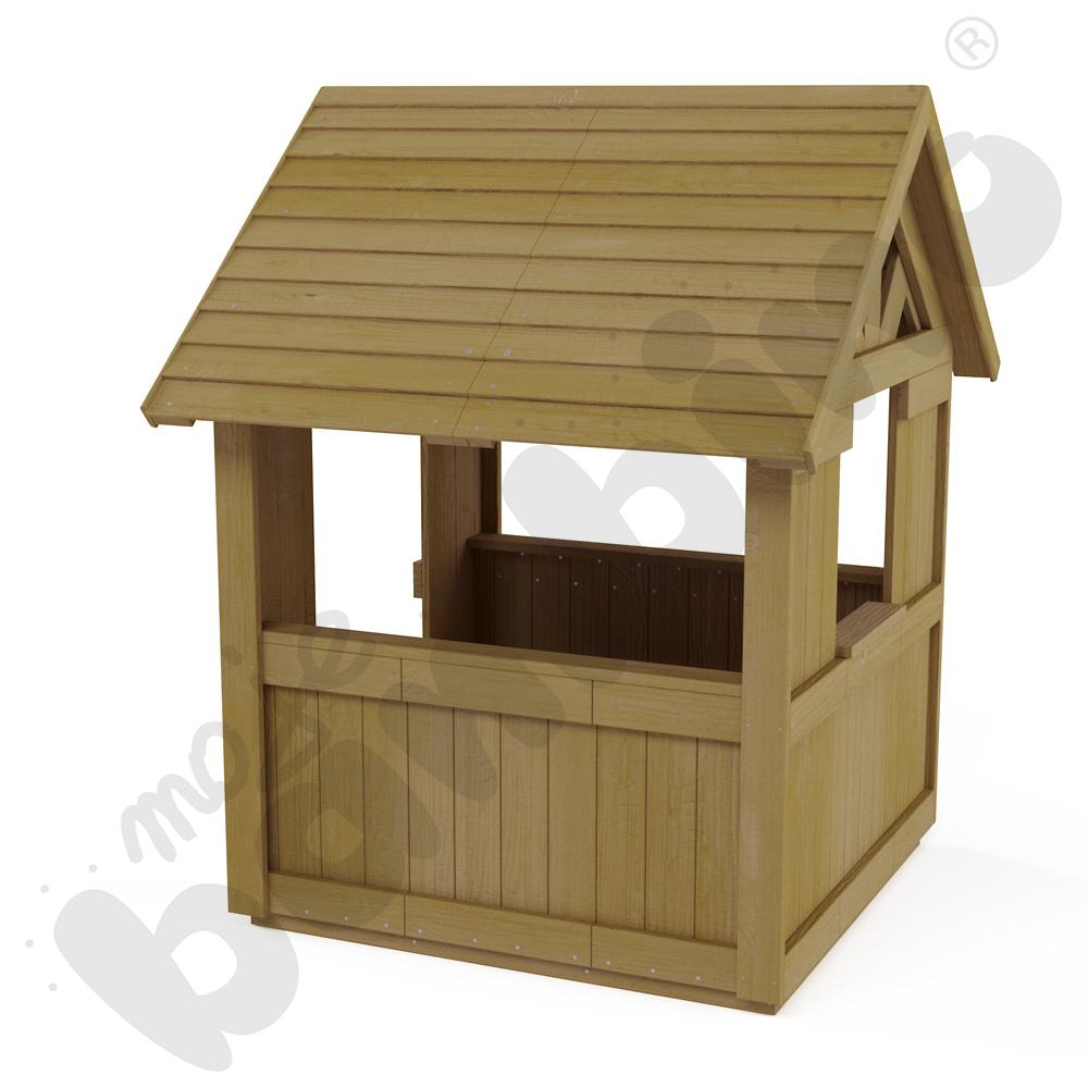 Ten minimalistyczny, ale funkcjonalny domek doskonale wpisuje się w ideę zabawy na świeżym powietrzu, wspierając rozwój dzieci poprzez kreatywność i interakcję z otoczeniem. Prosta konstrukcja umożliwia łatwą personalizację domku zgodnie z potrzebami i wyobraźnią dzieci. Domek jest idealnym miejscem do odgrywania różnych ról, takich jak sklepik, kawiarnia, poczta, czy dom. Stanowi jednocześnie przytulny kącik do czytania książek, rysowania czy po prostu odpoczynku na świeżym powietrzu.