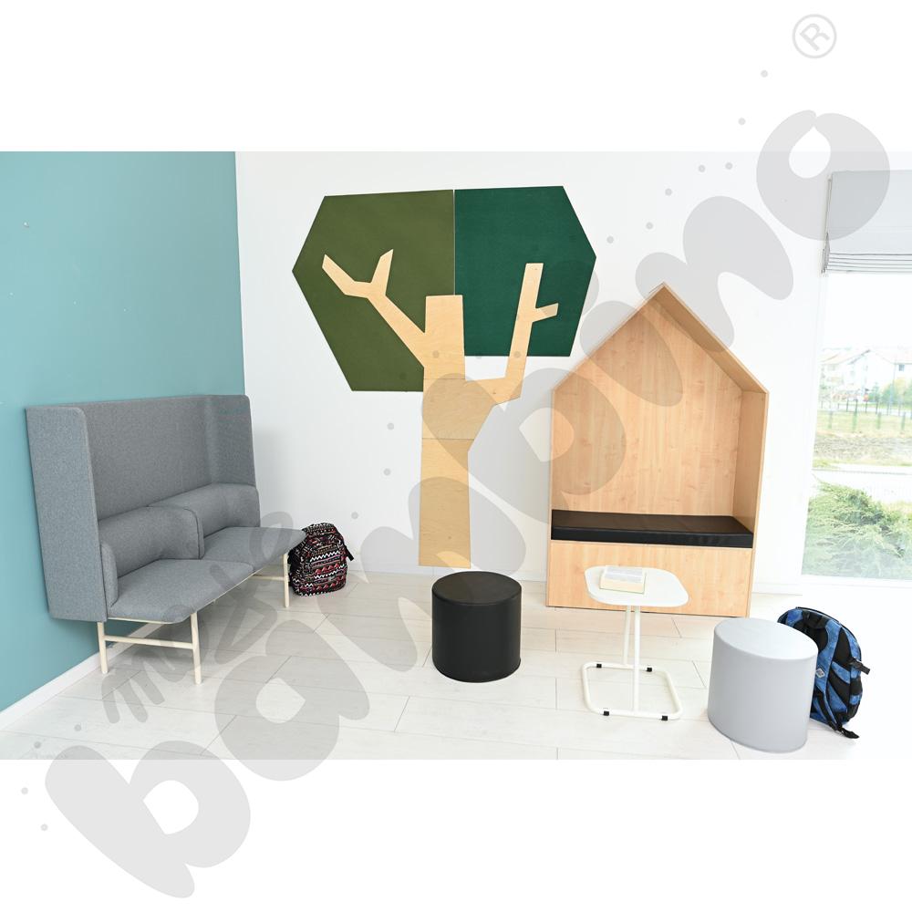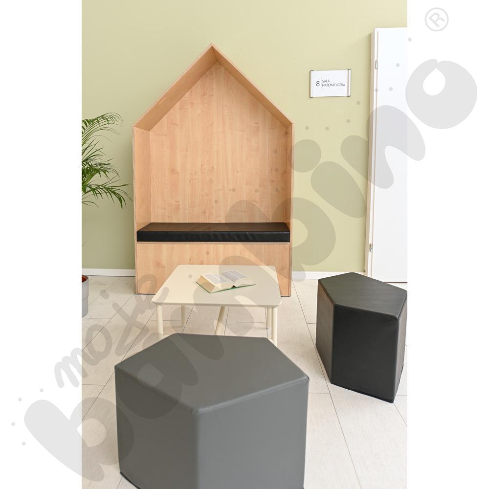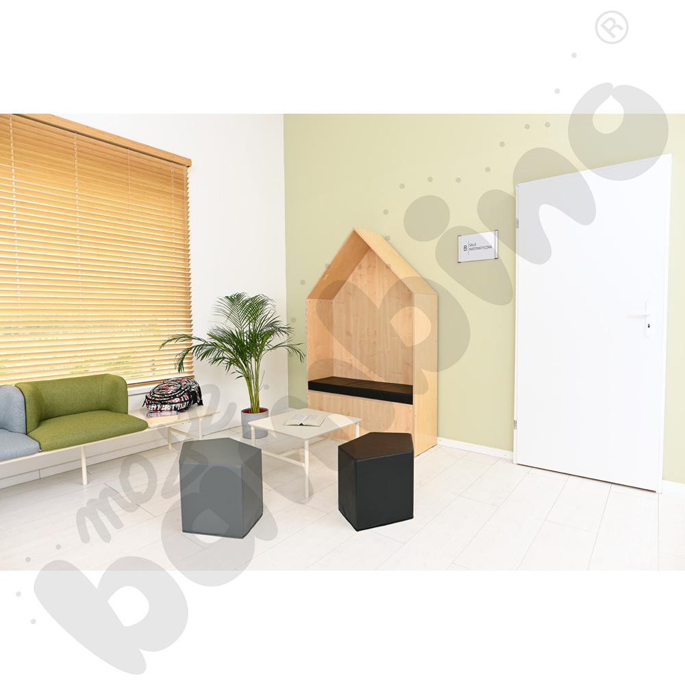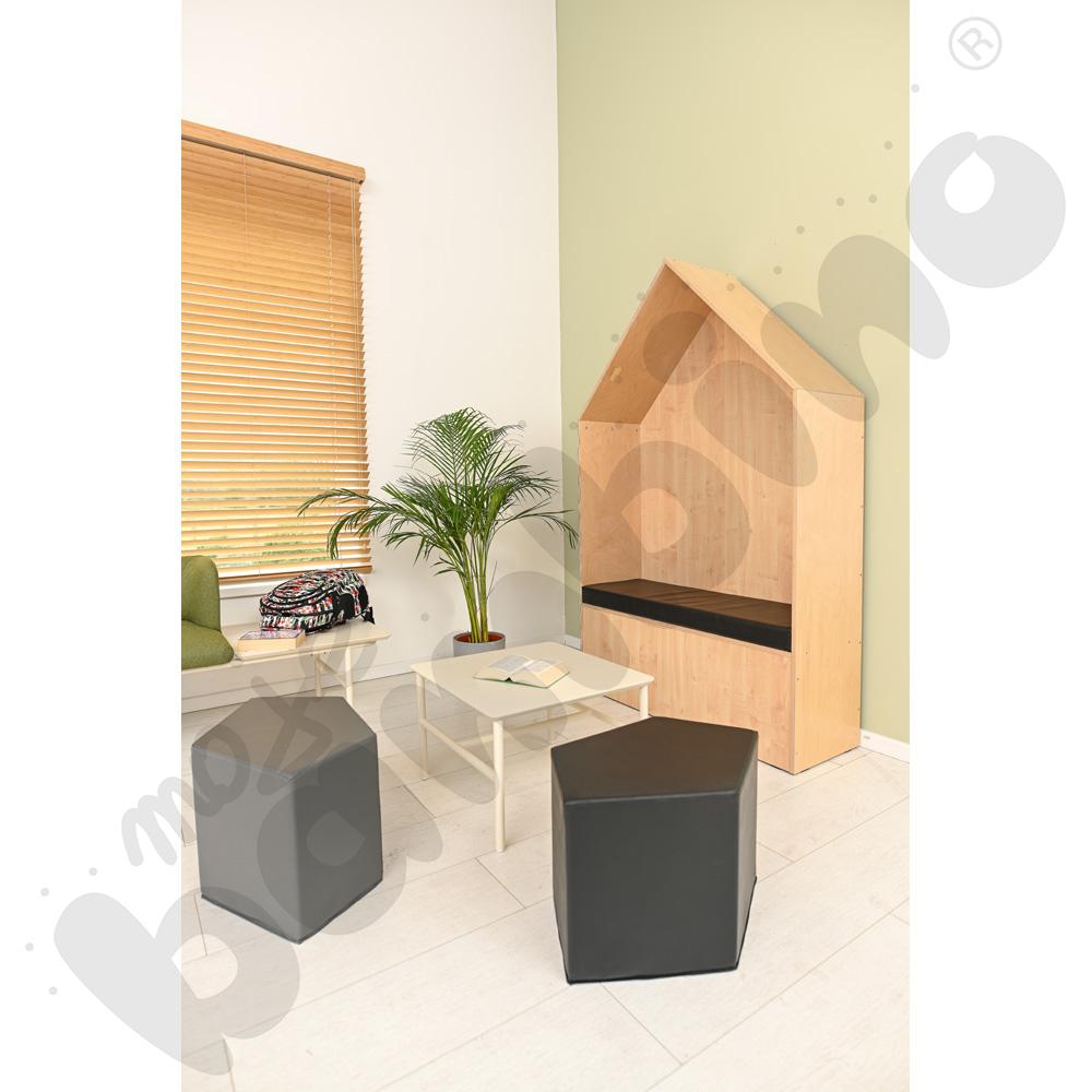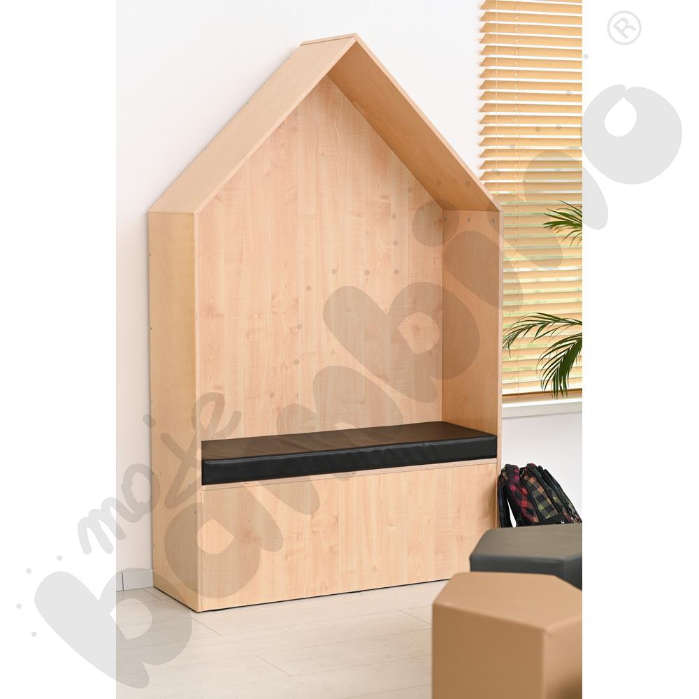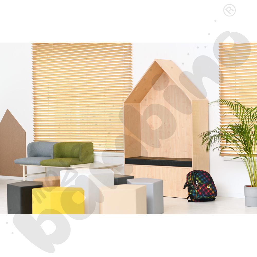 Idealne miejsce odpoczynku dla uczniów w trakcie przerwy między lekcjami. Dach, boki i siedzisko wykonane są ze sklejki o gr. 18 mm, natomiast front i tył - z płyty wiórowej o gr. 18 mm. Całość jest utrzymana w tonacji klonu. Domek posiada wygodny materac, na którym dzieci będą mogły sobie przysiąść, by nabrać sił na kolejne zajęcia.