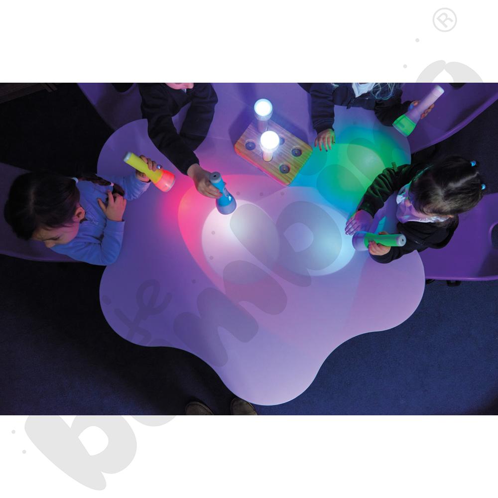 Zestaw zawiera 6 kolorowych latarek LED oraz praktyczną stację dokującą do ładowania. Latarki wykonane są z trwałego, bezpiecznego tworzywa sztucznego, idealnego dla dzieci. Doskonałe do eksperymentów ze światłem, zabaw w ciemności i zajęć sensorycznych w placówkach edukacyjnych.