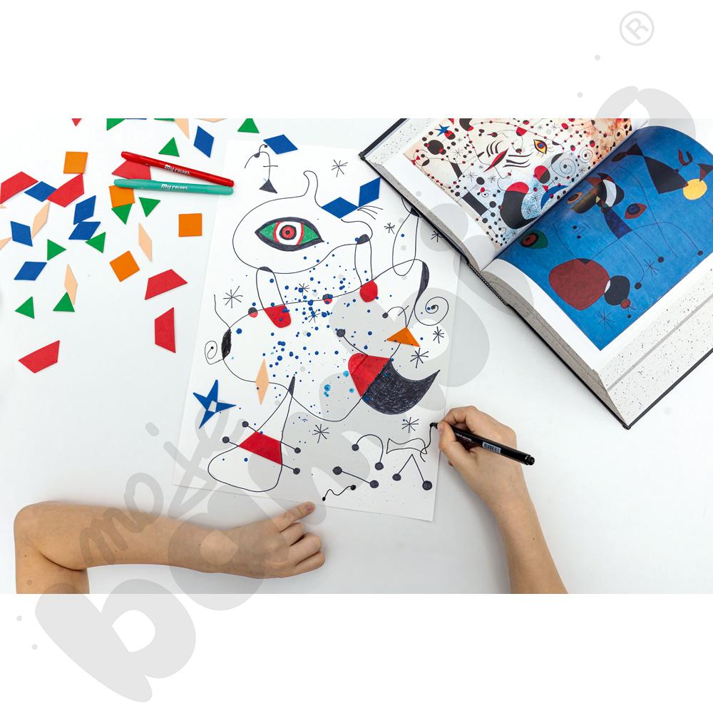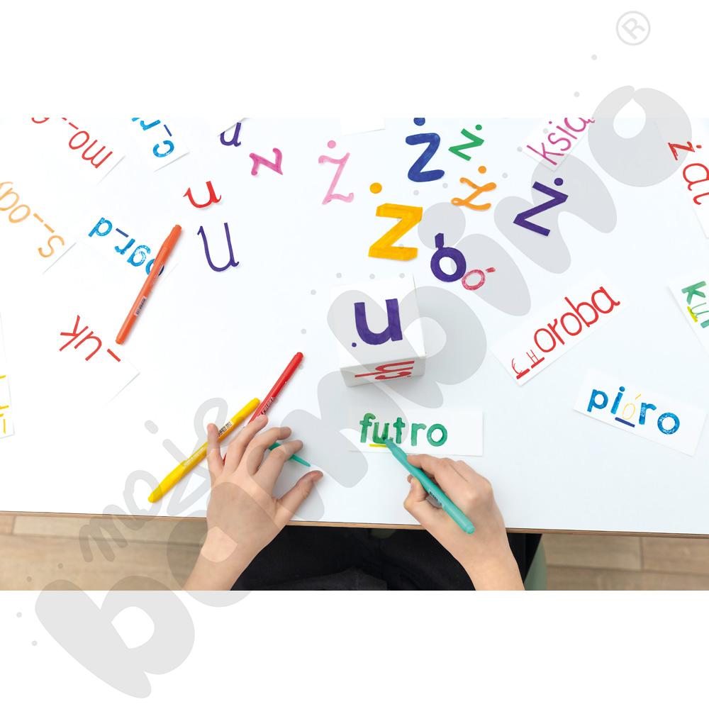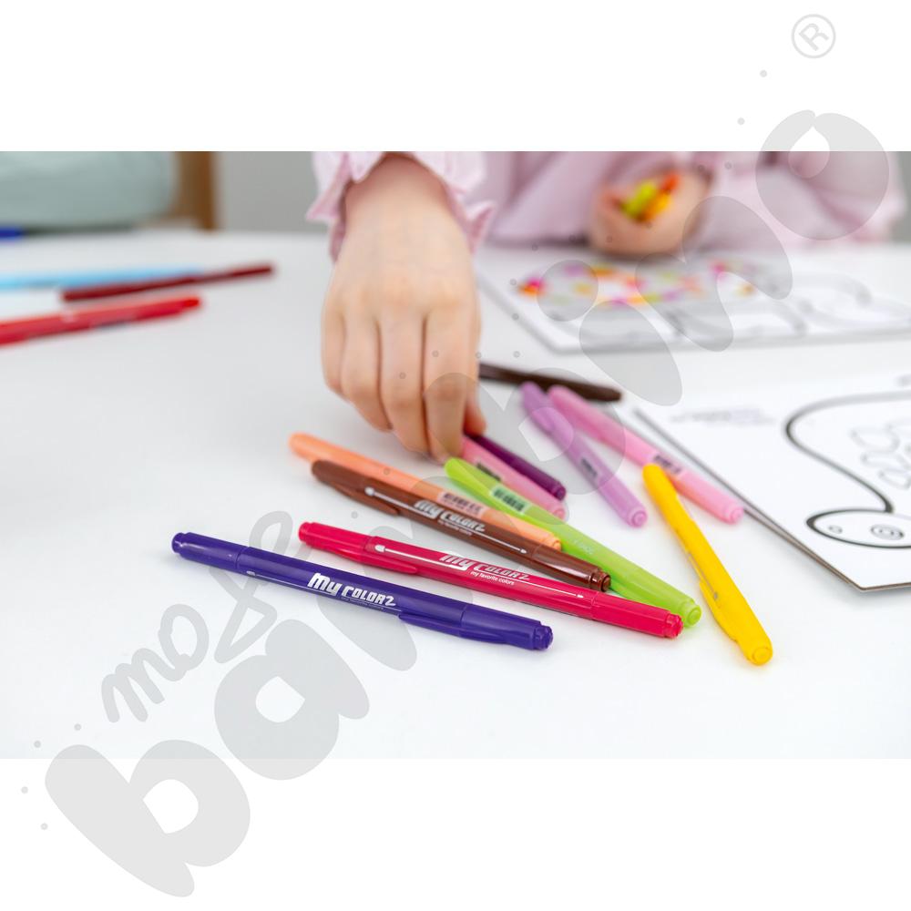 Zestaw 24 pisaków z dwoma fibrowymi końcówkami: cienką (1 mm) do precyzyjnego rysowania oraz grubszą (3 mm) do szybkiego kolorowania większych powierzchni. Żywe, trwałe kolory i atrament na bazie wody, który łatwo się zmywa, czynią ten komplet idealnym do wszechstronnych zastosowań plastycznych.
