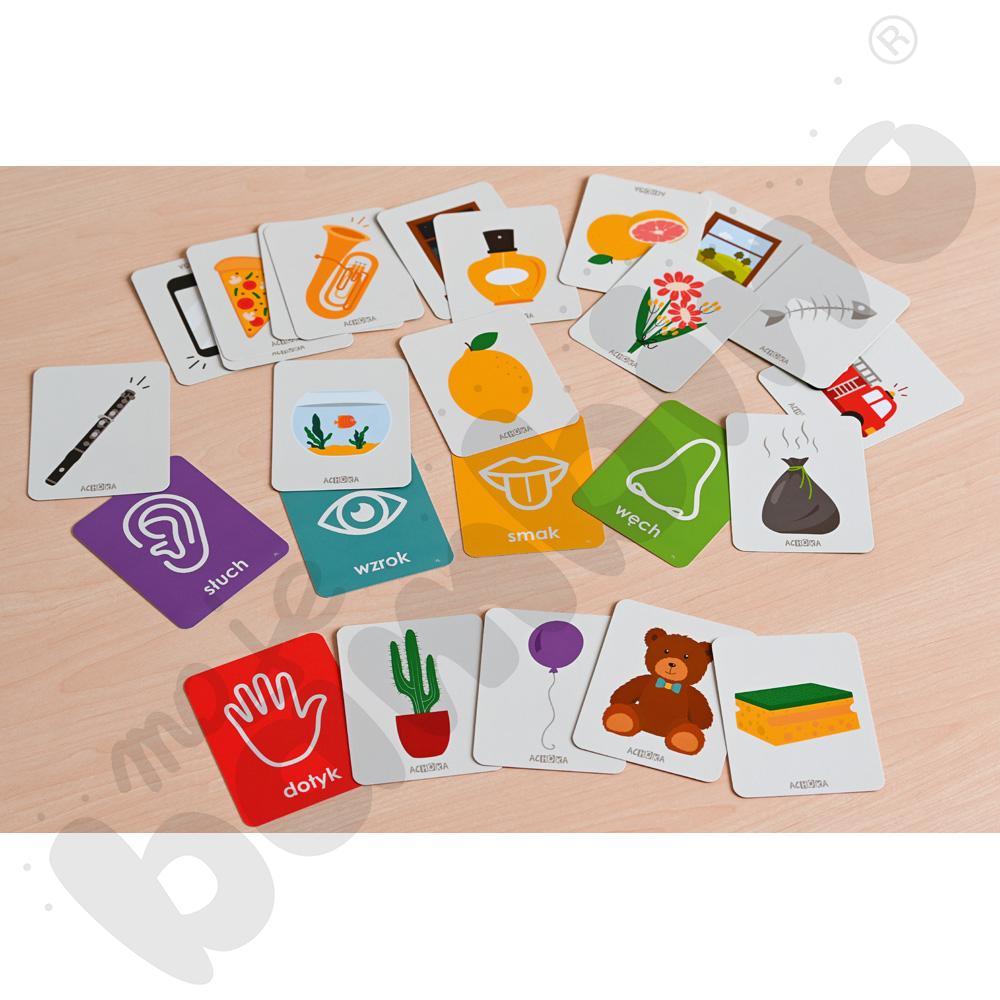 Nauczyciel może elastycznie dobierać stopień trudności – od prostych skojarzeń po bardziej złożone klasyfikacje (np. przyjemne/nieprzyjemne, jasne/ciemne). Dzieci uczą się również nazw narządów zmysłów i opowiadają, jak działają. Gra wspiera rozwój słownictwa i języka w naturalny sposób, a jej struktura doskonale sprawdza się w pracy indywidualnej oraz w małych grupach.