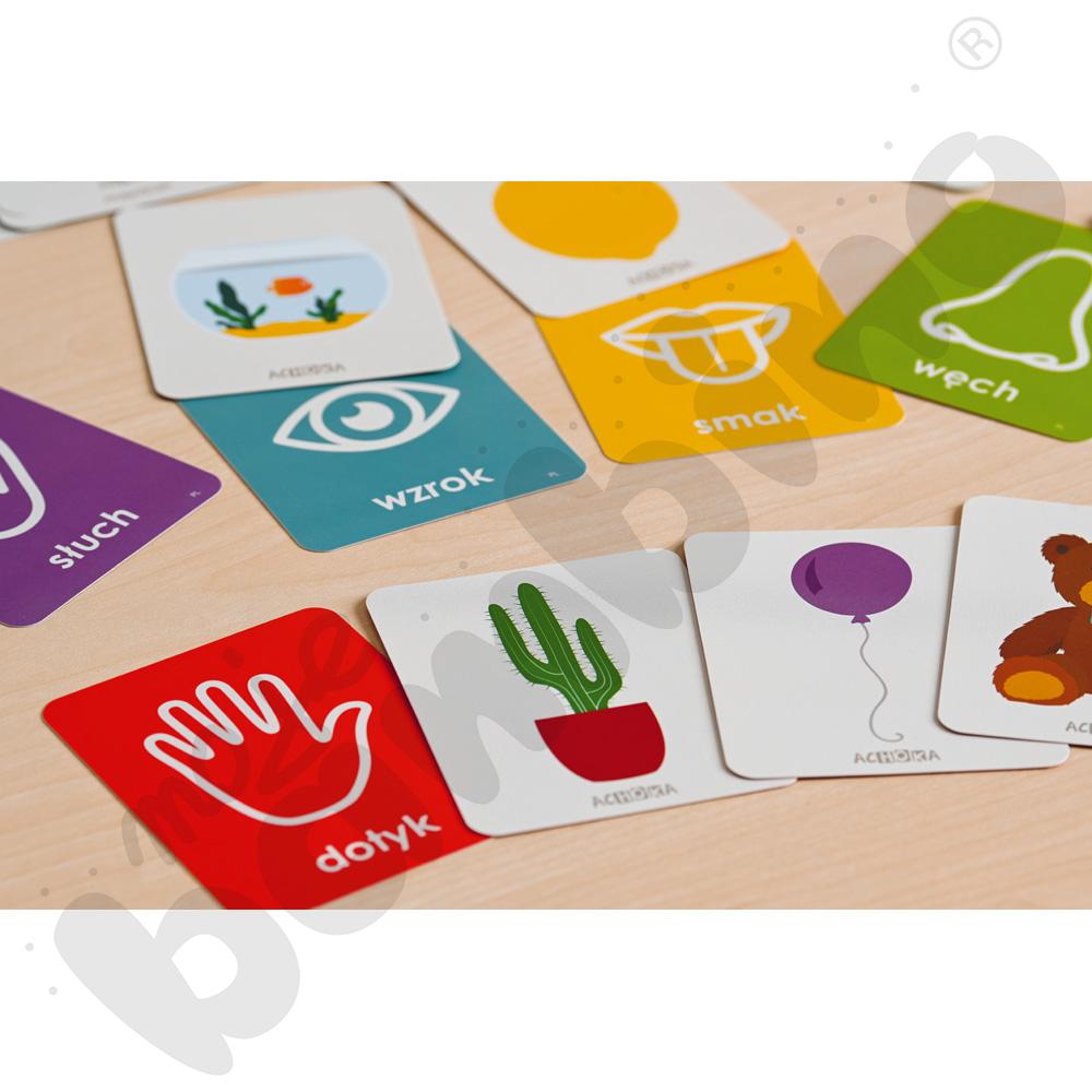 Nauczyciel może elastycznie dobierać stopień trudności – od prostych skojarzeń po bardziej złożone klasyfikacje (np. przyjemne/nieprzyjemne, jasne/ciemne). Dzieci uczą się również nazw narządów zmysłów i opowiadają, jak działają. Gra wspiera rozwój słownictwa i języka w naturalny sposób, a jej struktura doskonale sprawdza się w pracy indywidualnej oraz w małych grupach.