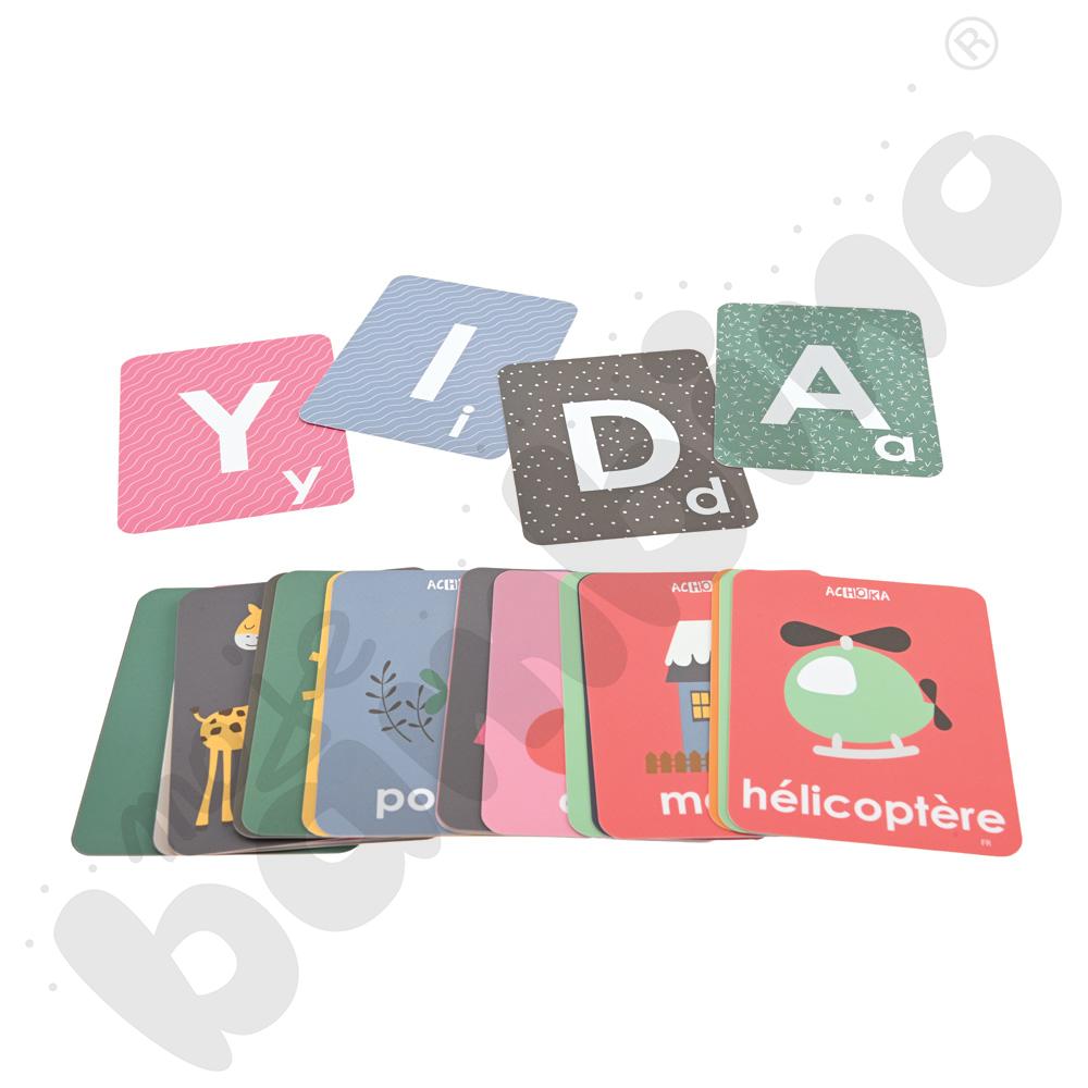Karty można wykorzystywać zarówno jako materiał do rozpoznawania liter, jak i do budowania pierwszych prostych słów.