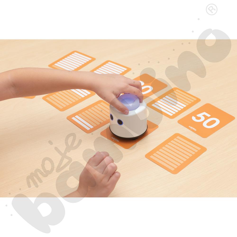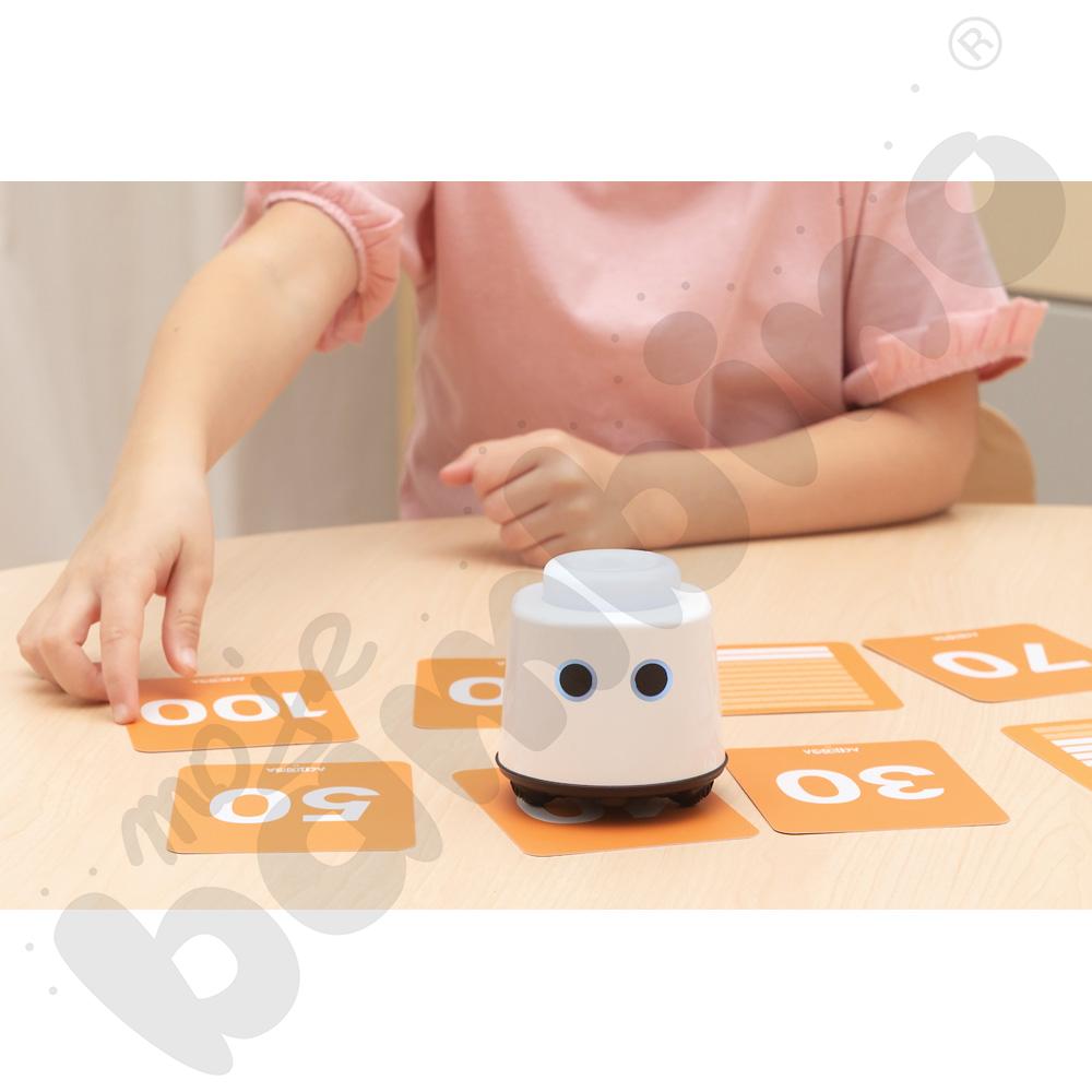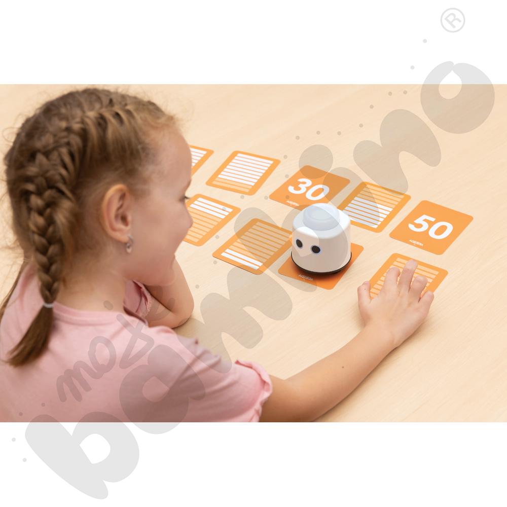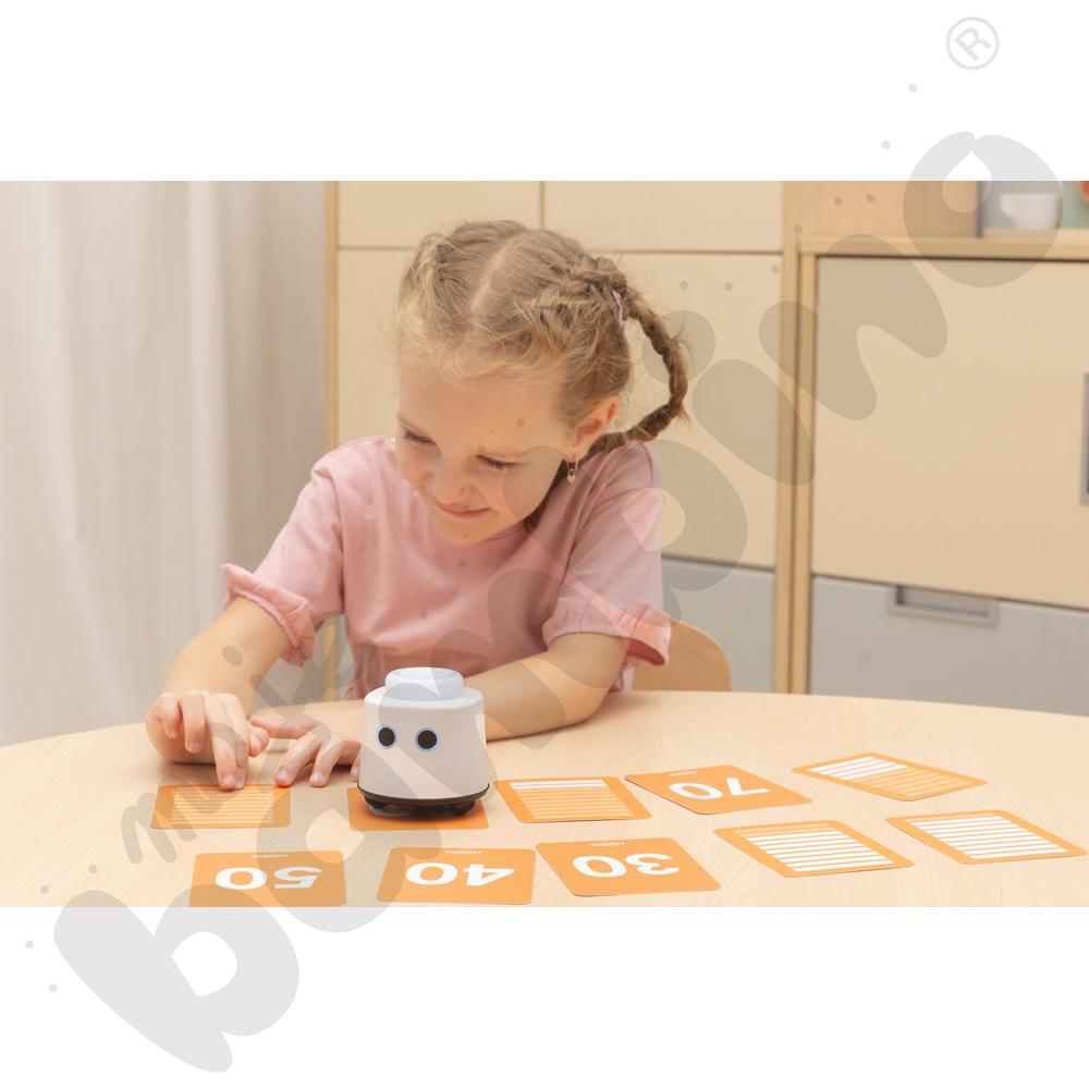 Karty są rozwinięciem zestawu LOGI miniBot – liczby. Zostały stworzone z myślą o dzieciach, które są gotowe na dalsze odkrywanie świata matematyki zarówno po polsku, jak i w językach obcych. Wprowadzają liczby od 10 do 100 w formie prostych i zrozumiałych ilustracji, które ułatwiają ich zapamiętywanie i kojarzenie. Każda karta prezentuje ilość w formie linijek, co pozwala dzieciom lepiej zrozumieć, czym są dziesiątki i jak powstaje system dziesiętny.