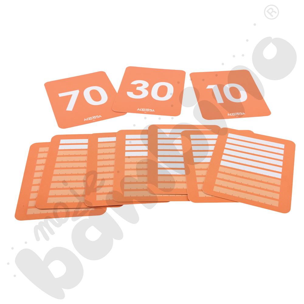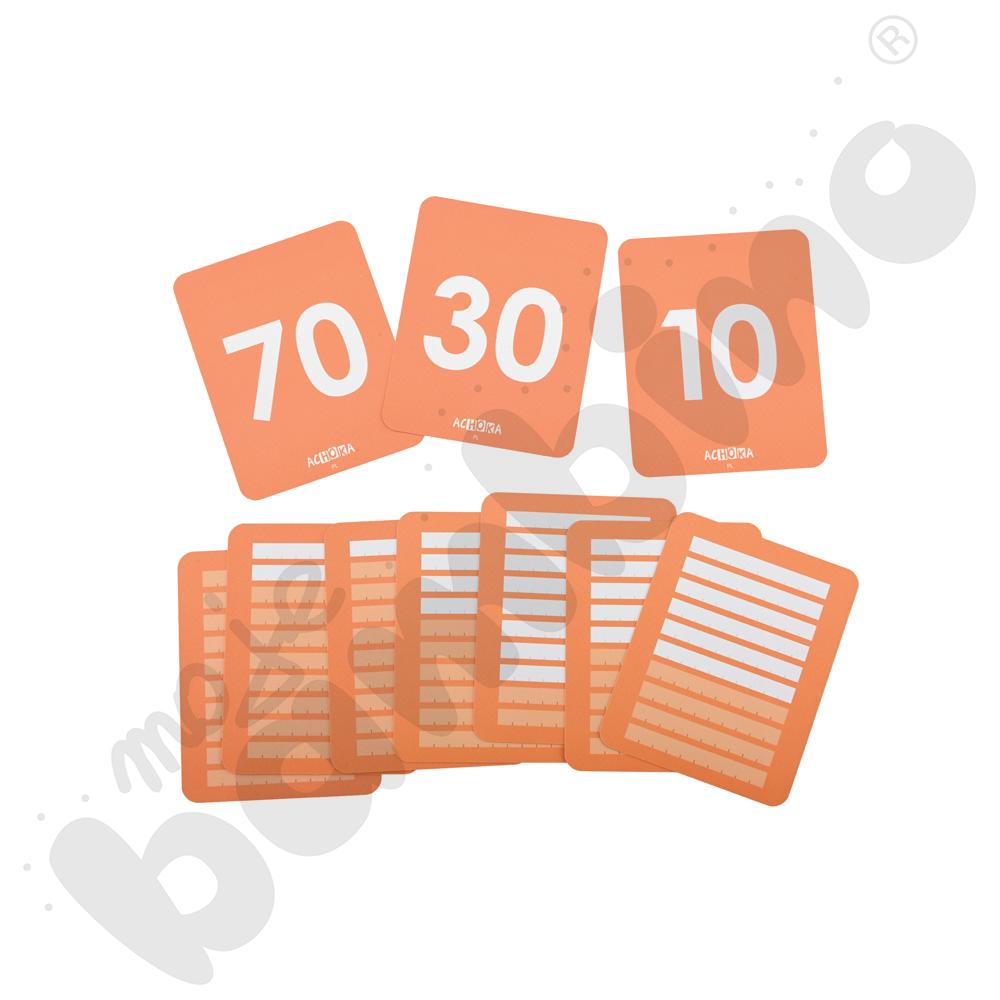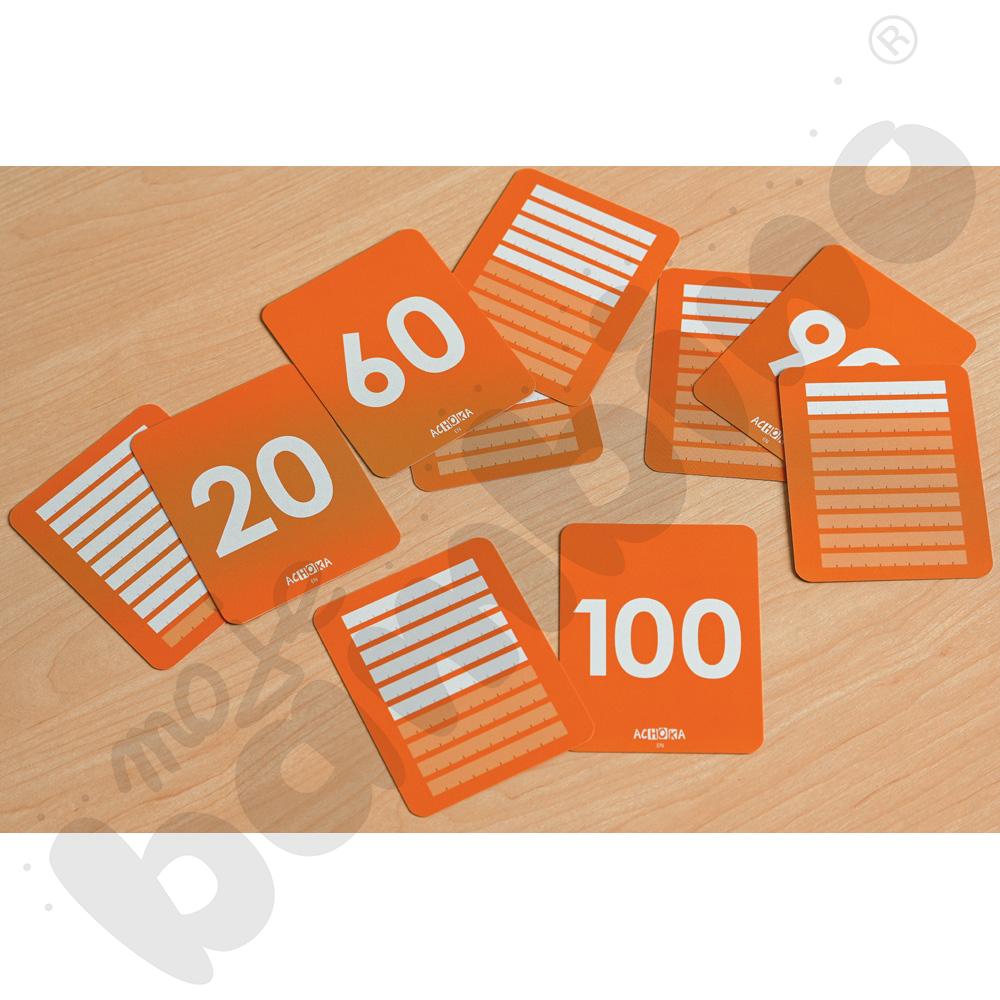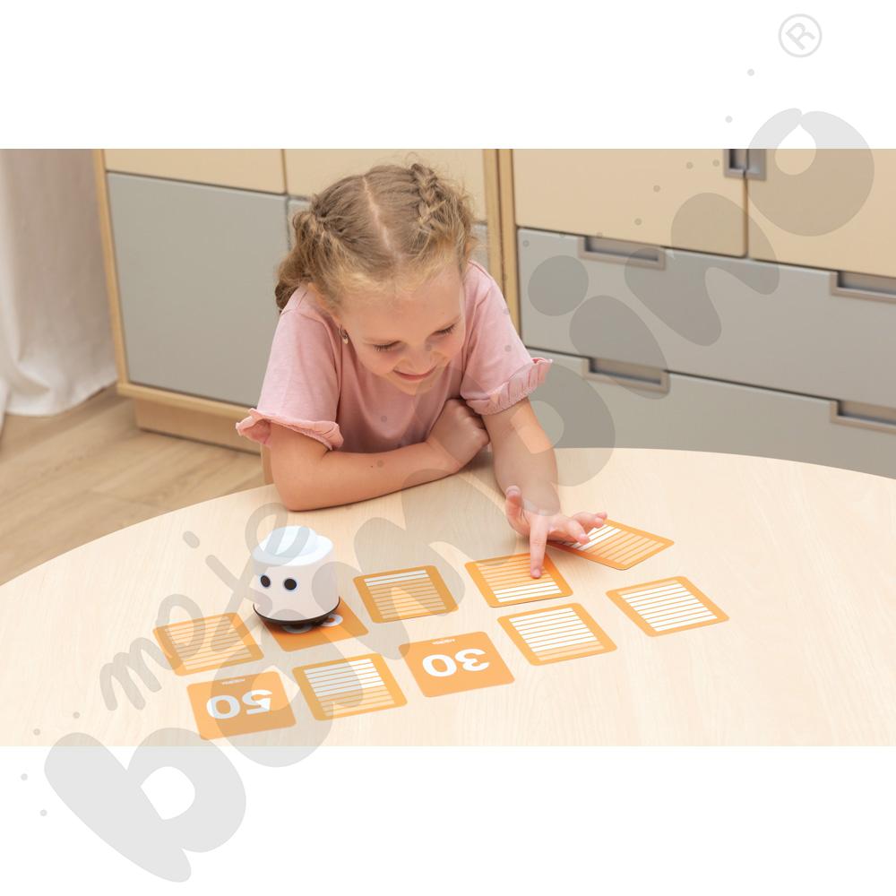 Karty są rozwinięciem zestawu LOGI miniBot – liczby. Zostały stworzone z myślą o dzieciach, które są gotowe na dalsze odkrywanie świata matematyki zarówno po polsku, jak i w językach obcych. Wprowadzają liczby od 10 do 100 w formie prostych i zrozumiałych ilustracji, które ułatwiają ich zapamiętywanie i kojarzenie. Każda karta prezentuje ilość w formie linijek, co pozwala dzieciom lepiej zrozumieć, czym są dziesiątki i jak powstaje system dziesiętny.