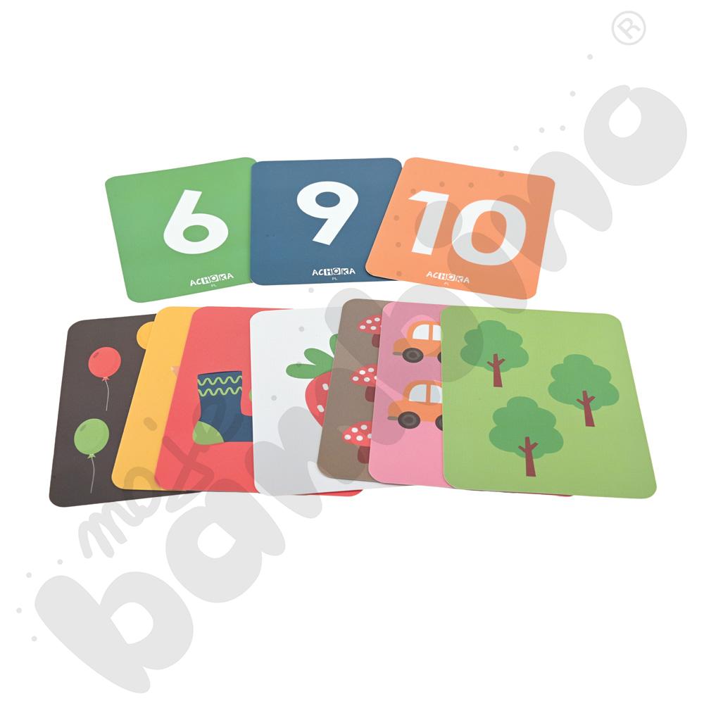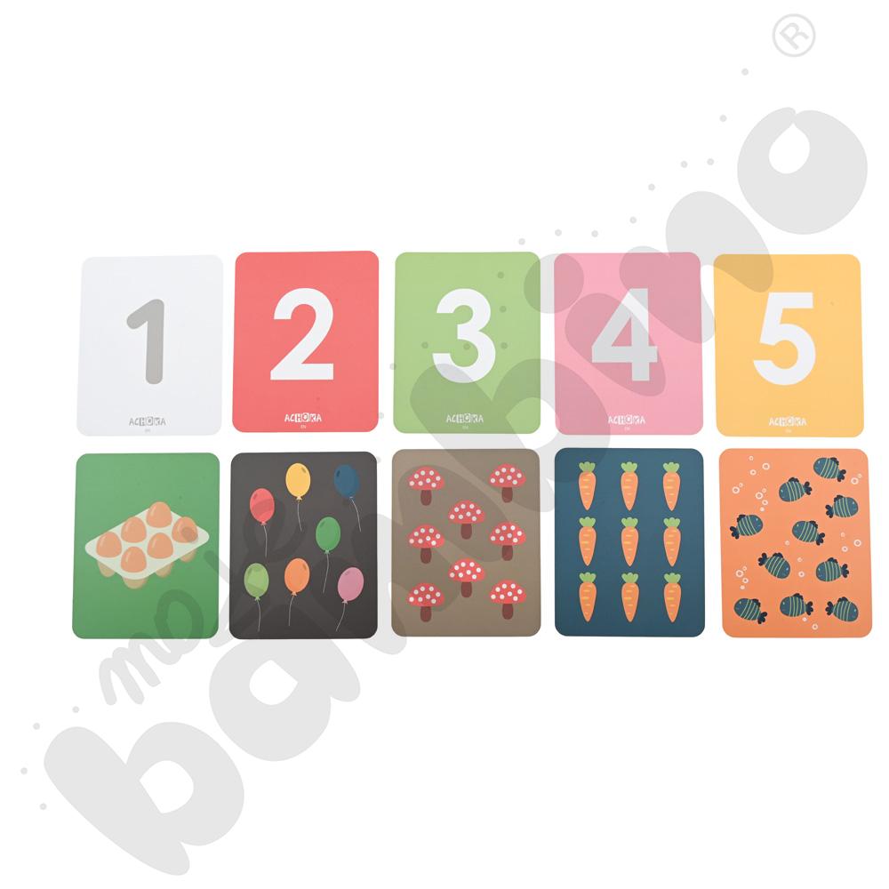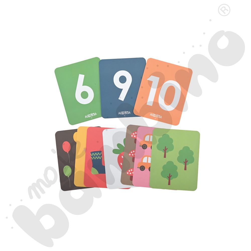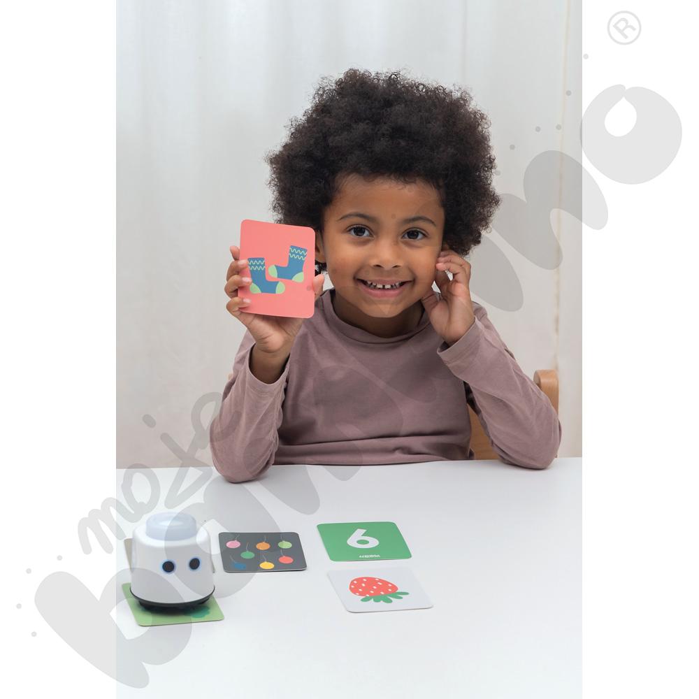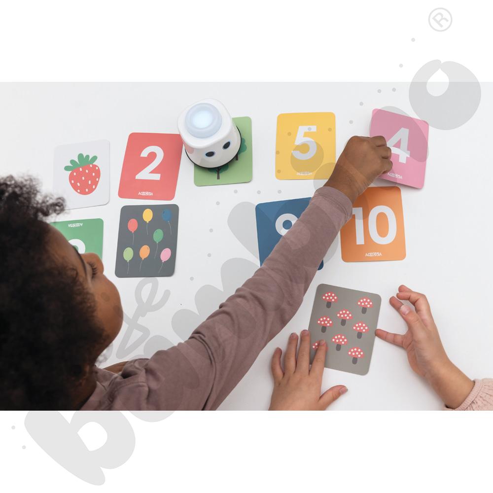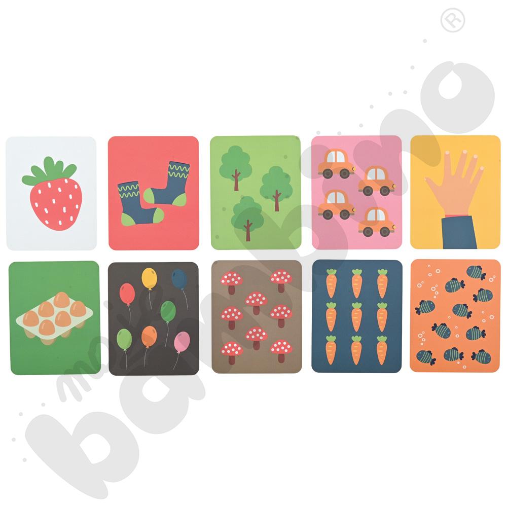 Zestaw rozwija umiejętność rozpoznawania cyfr, nazywania ich oraz kojarzenia z odpowiadającą im liczbą przedmiotów lub ilustracją. Dzięki prostym i intuicyjnym zadaniom dzieci uczą się porządkowania liczb oraz ich wzajemnych relacji – co stanowi fundament dalszej edukacji matematycznej. Dwustronne karty pozwalają pracować zarówno z ilustracjami, jak i samymi liczbami, co umożliwia stopniowanie poziomu trudności.