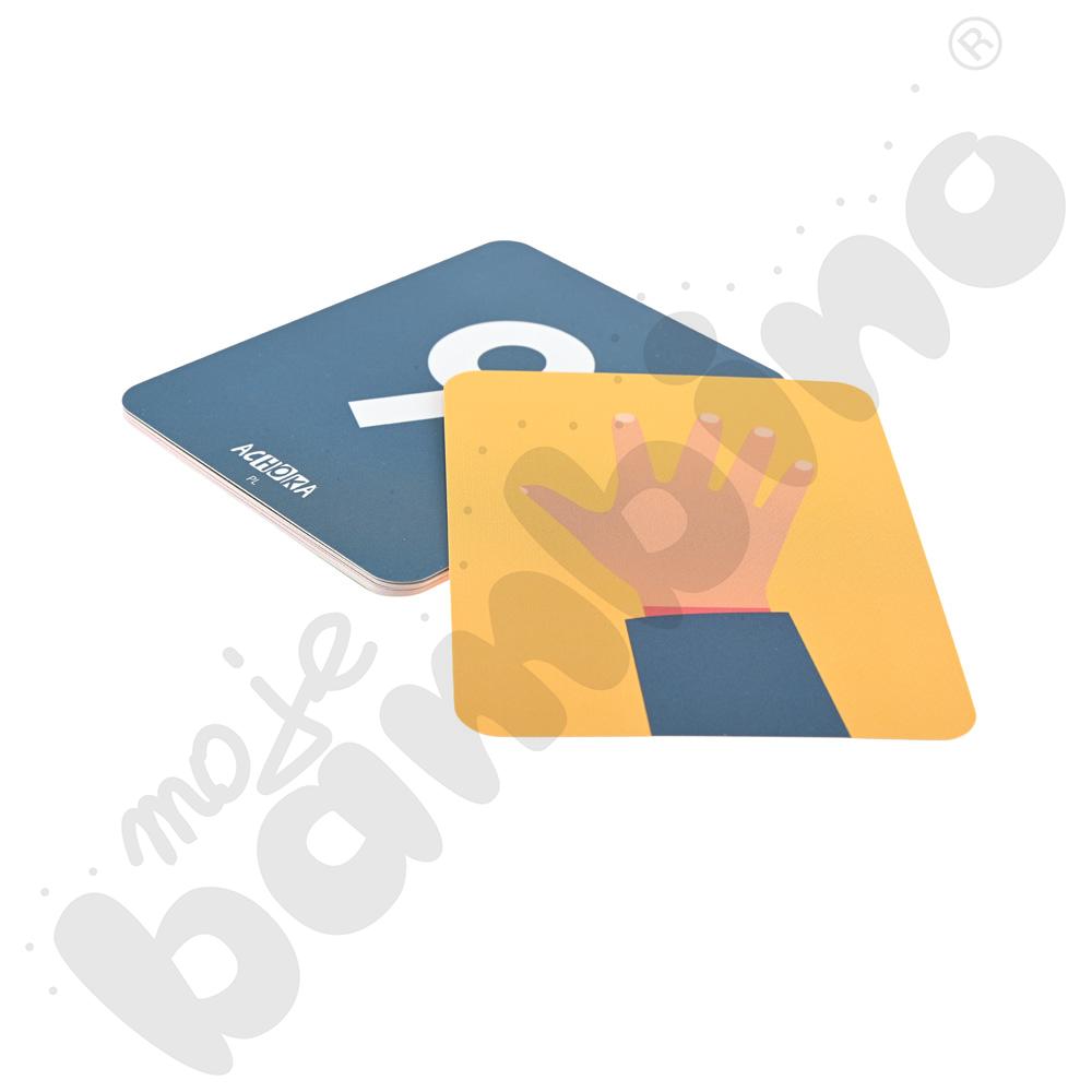 Ćwiczenia z kartami mogą być rozszerzane o działania na konkretach – układanie osi liczbowej, przeliczanie, porównywanie.