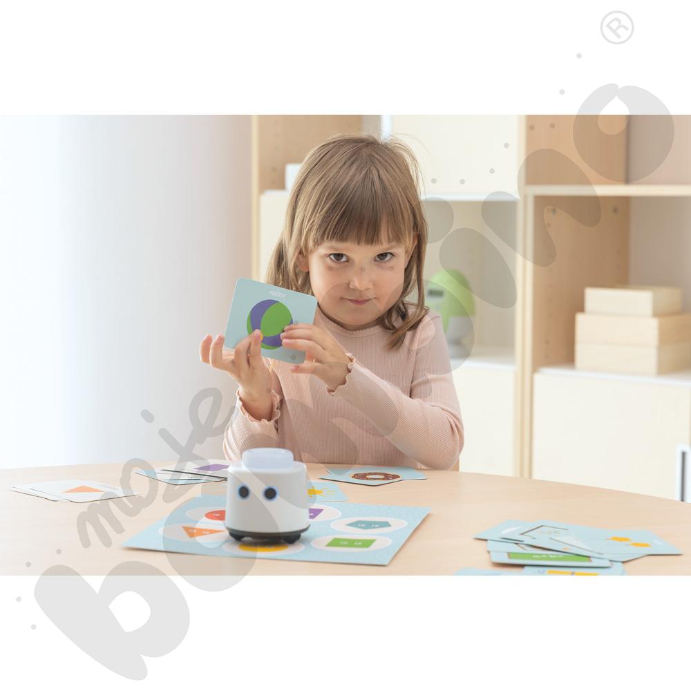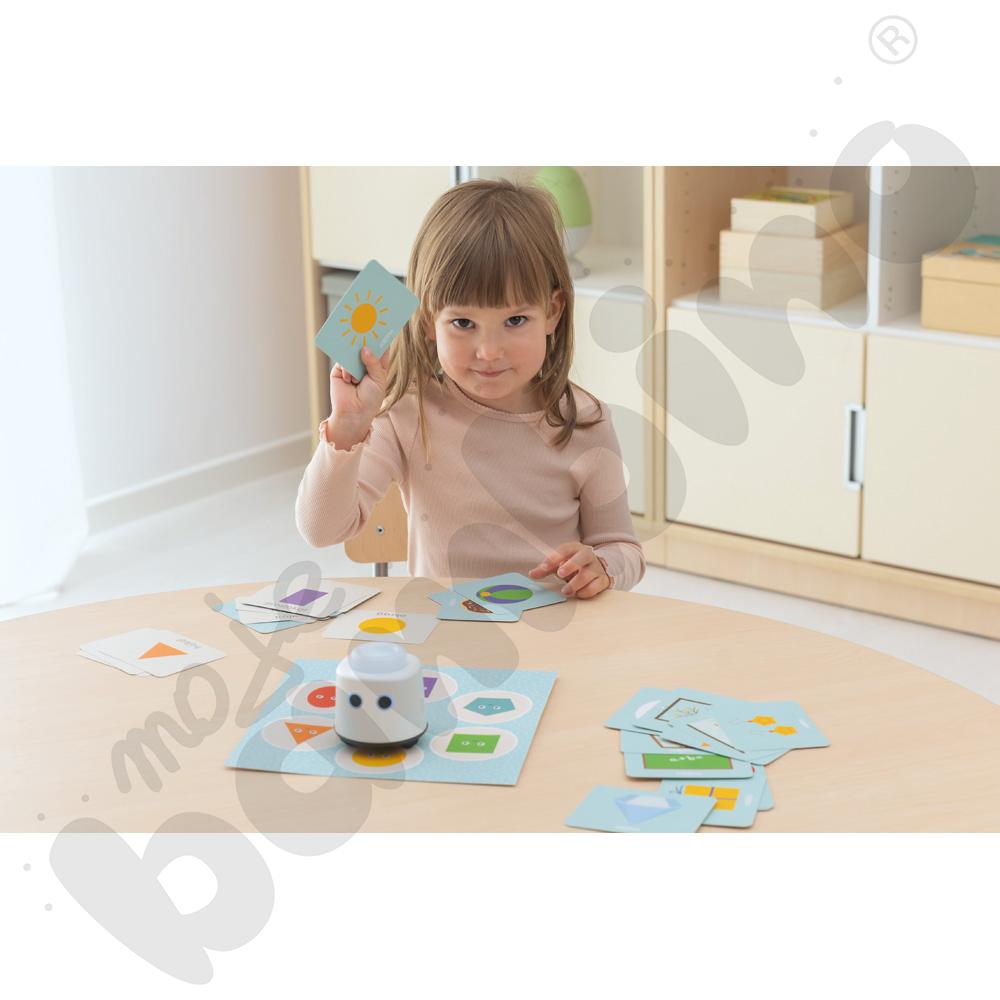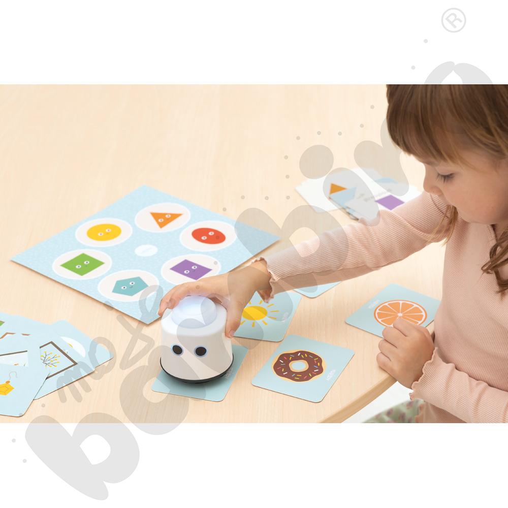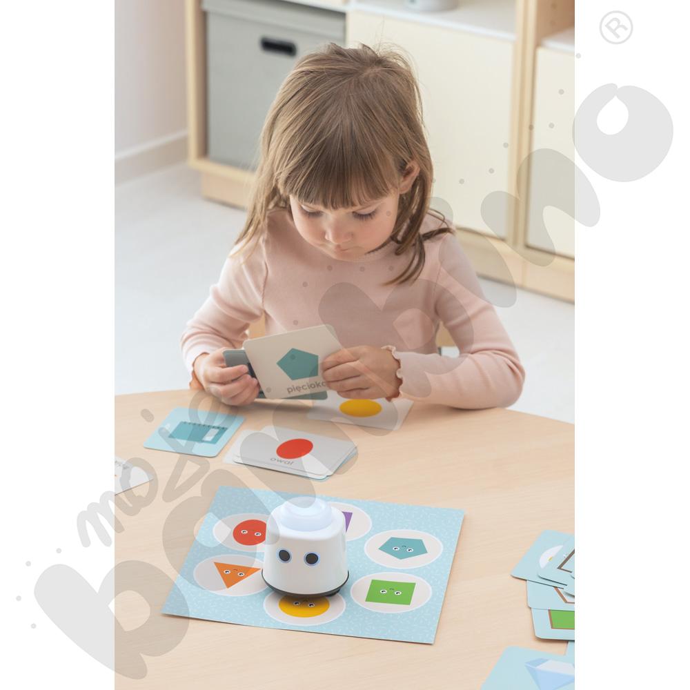 Zestaw oparty jest na metodzie samodzielnego sprawdzania odpowiedzi, co sprzyja budowaniu pewności siebie i rozwija umiejętność samokontroli. Możliwość pracy z dwóch stron kart (figura/przedmiot) pozwala wprowadzać coraz trudniejsze zadania i stopniowo podnosić poziom trudności.