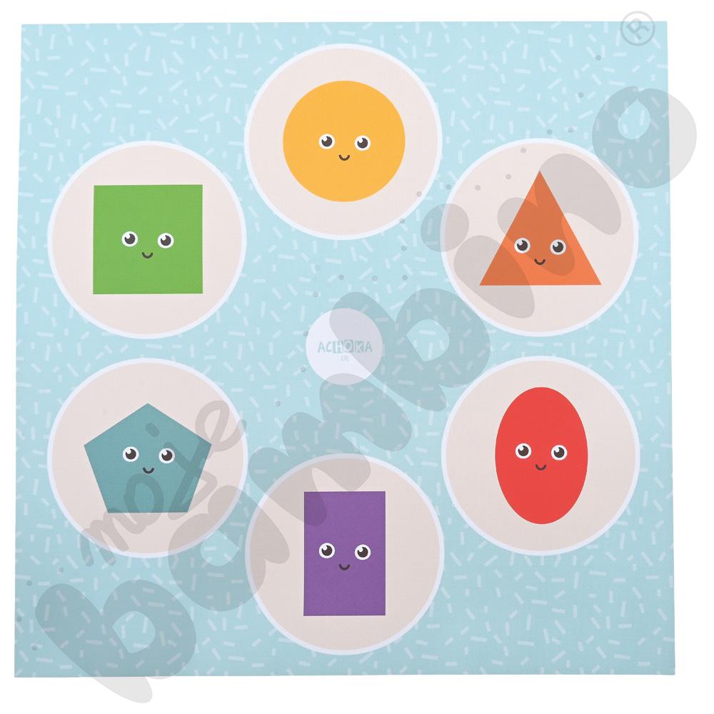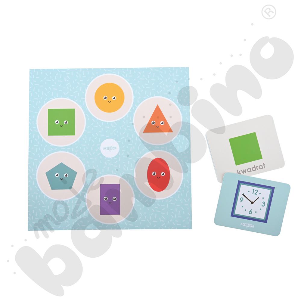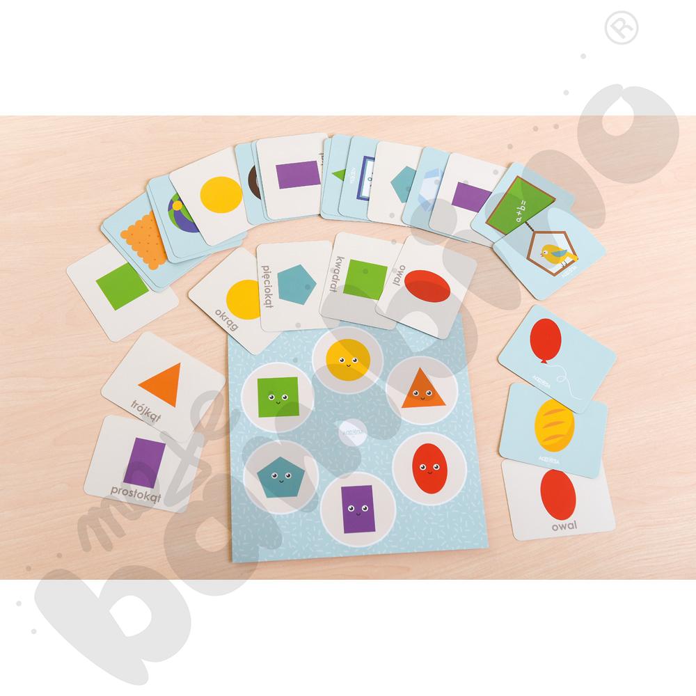 Praktyczne wsparcie w prowadzeniu zajęć edukacyjnych, które w zabawny i angażujący sposób wprowadza dzieci w świat kształtów i podstaw geometrii. Gra rozwija spostrzegawczość, logiczne myślenie oraz umiejętność kojarzenia figur z otaczającymi nas przedmiotami. Dzięki pracy z kartami dzieci poznają i utrwalą nazwy podstawowych figur płaskich, takich jak koło, kwadrat, trójkąt, prostokąt czy pięciokąt.