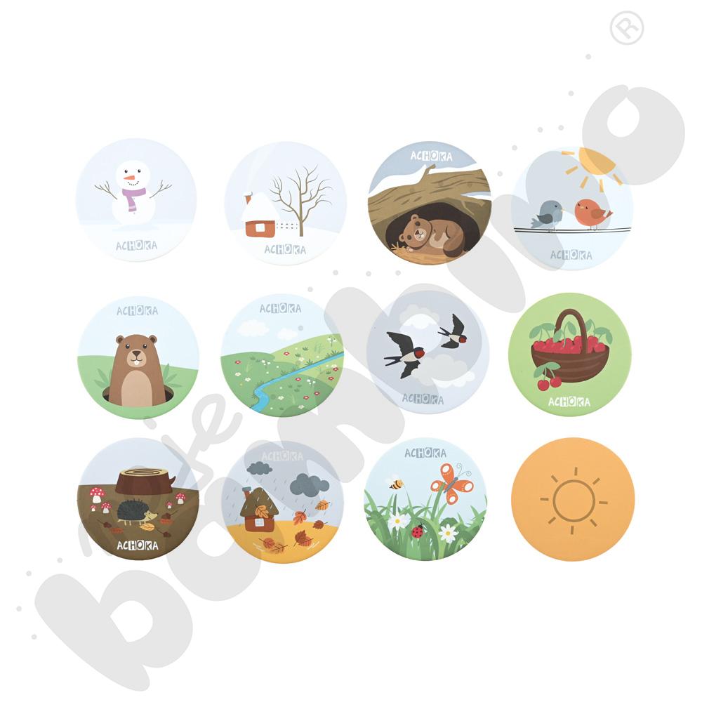 • 12 kart z ilustracjami odpowiadającymi czterem porom roku