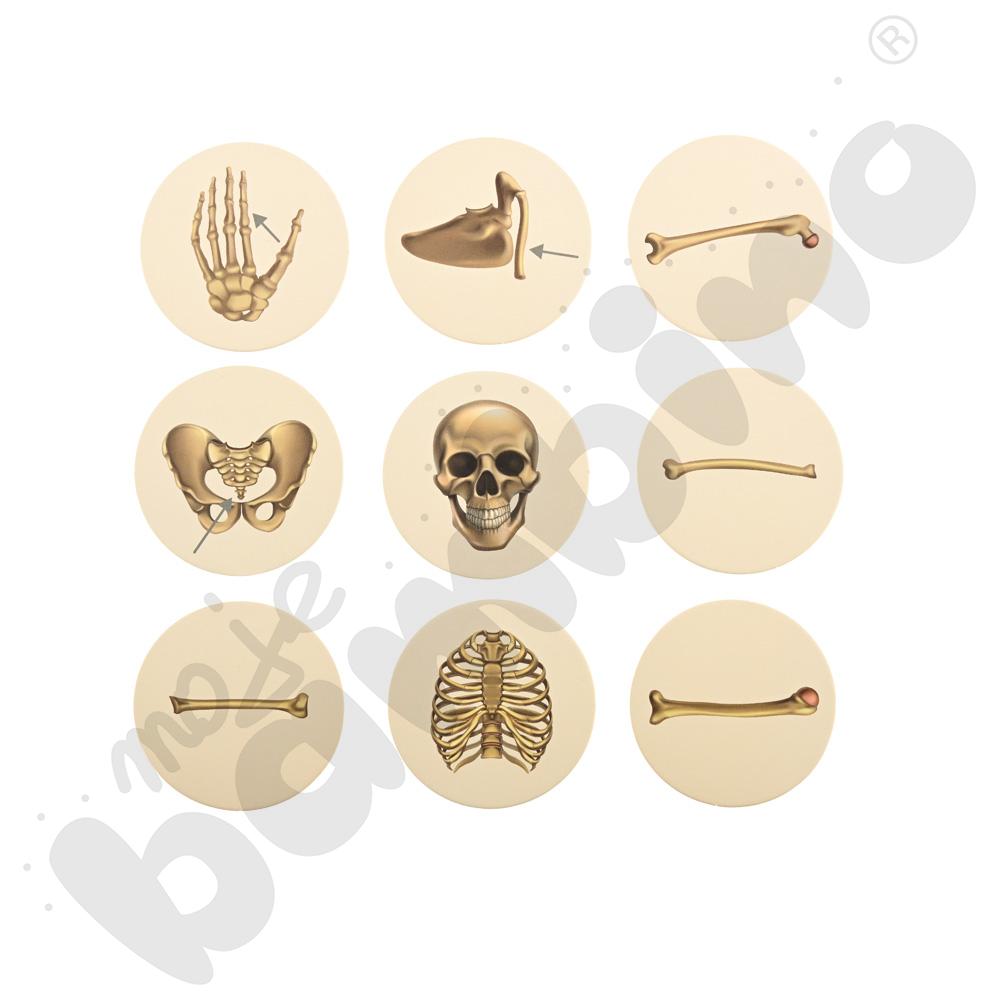 • 9 kart przedstawiających wybrane kości ludzkiego ciała