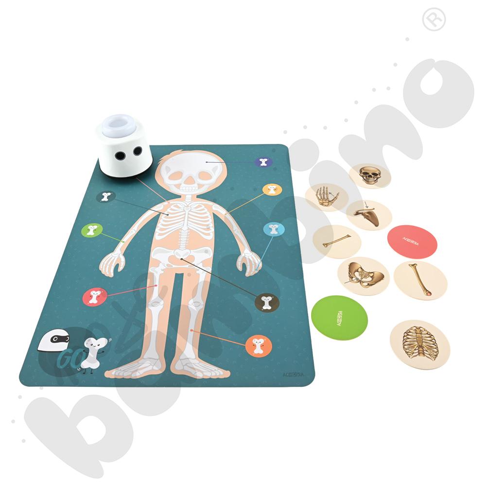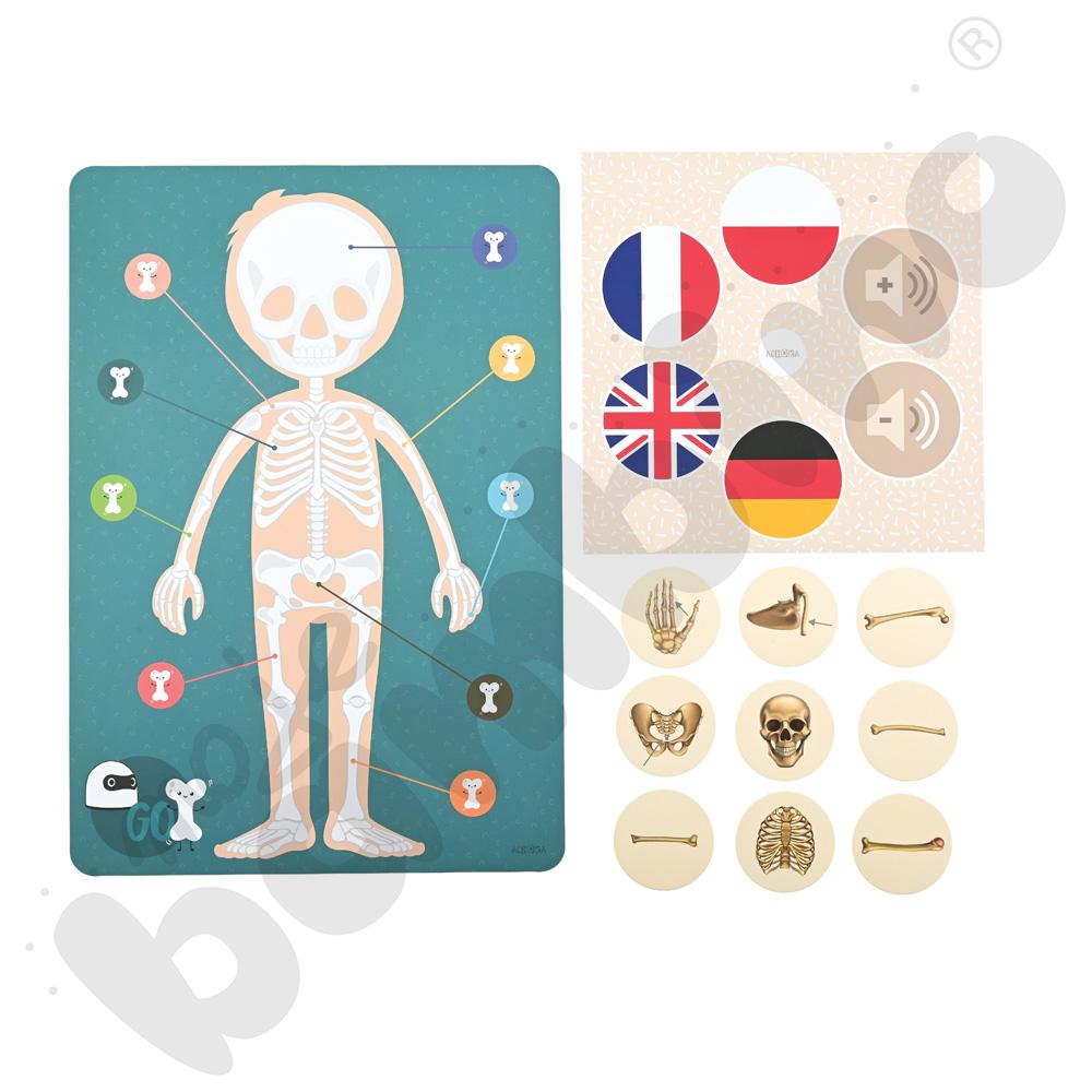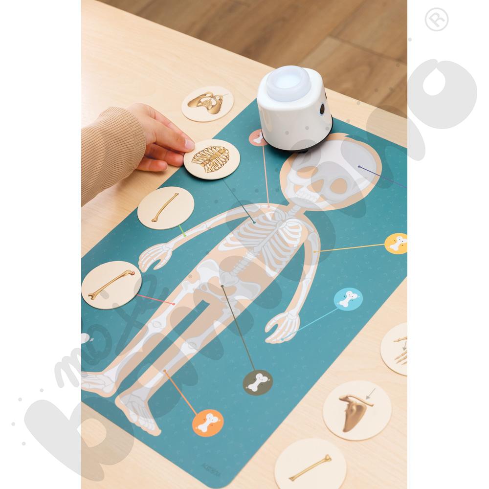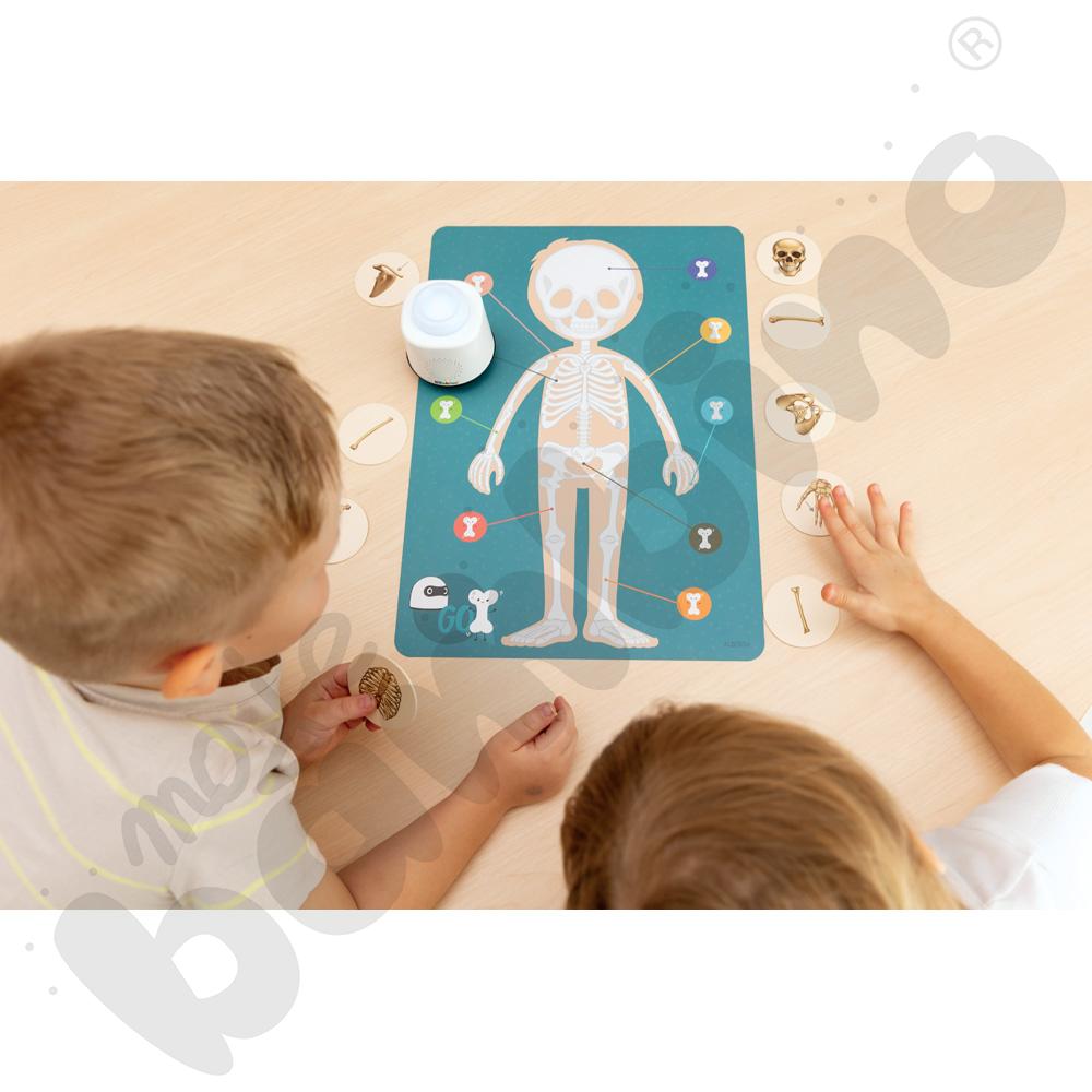 Zestaw w przystępny sposób wprowadza dzieci w tematykę anatomii człowieka. Podczas zabawy uczniowie poznają podstawowe kości budujące ludzkie ciało, uczą się ich nazw oraz lokalizacji, a także utrwalają wiedzę poprzez działanie i obserwację. Ilustracje i nagrania audio pomagają zrozumieć, jak zbudowane jest ciało człowieka i jakie funkcje pełnią jego elementy.