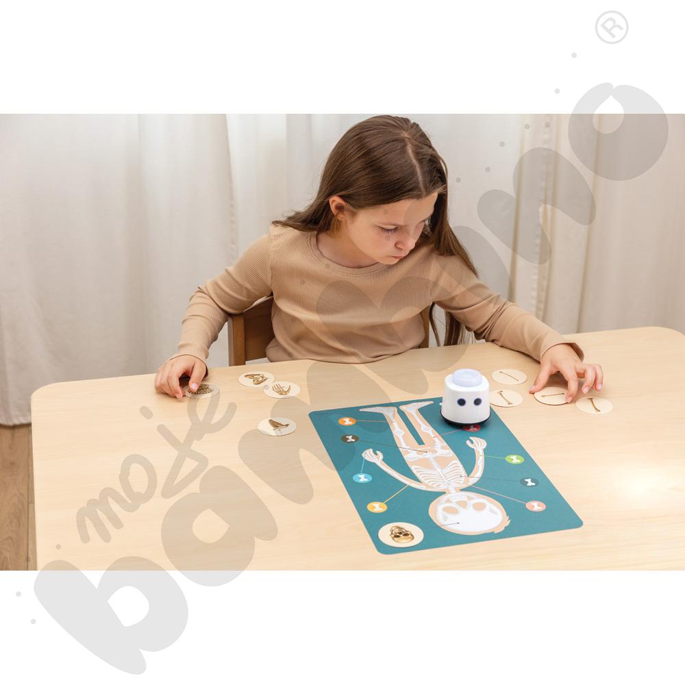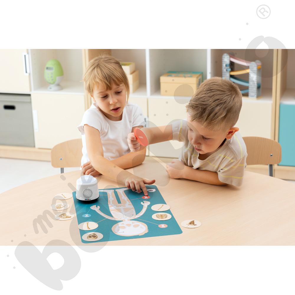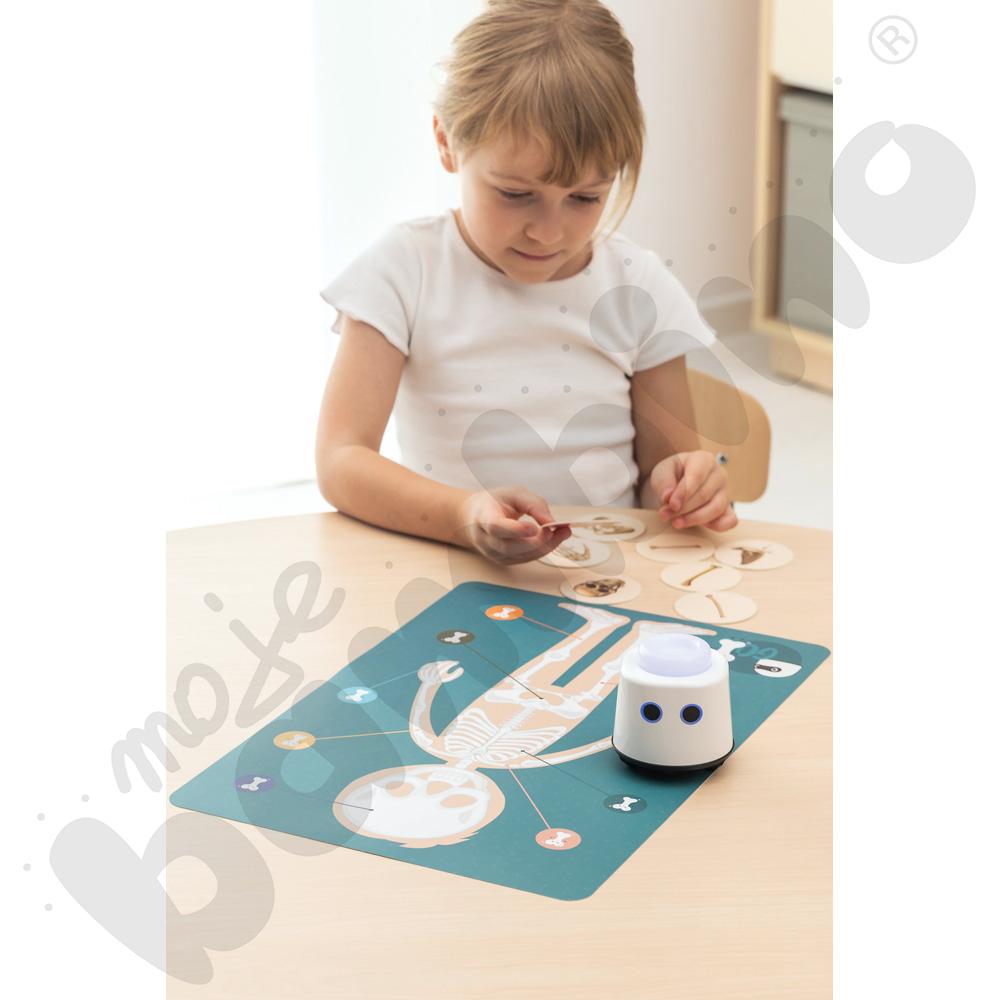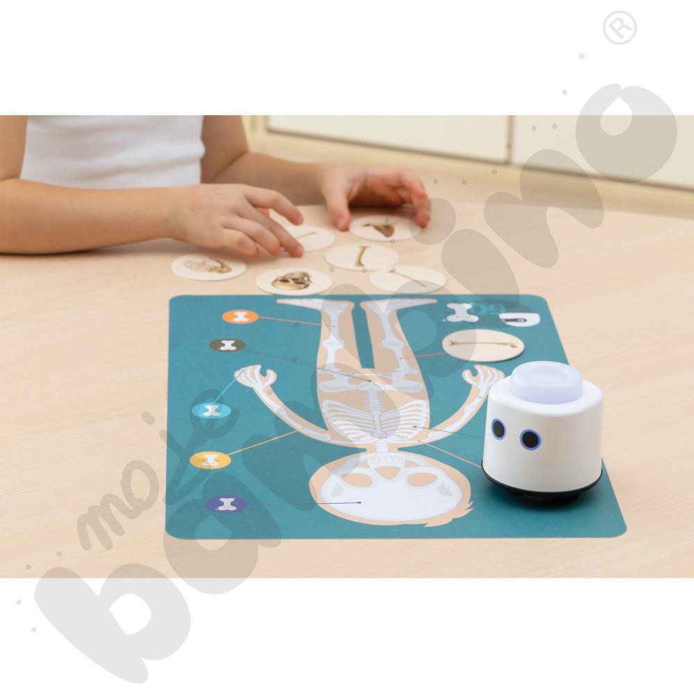 Zestaw w przystępny sposób wprowadza dzieci w tematykę anatomii człowieka. Podczas zabawy uczniowie poznają podstawowe kości budujące ludzkie ciało, uczą się ich nazw oraz lokalizacji, a także utrwalają wiedzę poprzez działanie i obserwację. Ilustracje i nagrania audio pomagają zrozumieć, jak zbudowane jest ciało człowieka i jakie funkcje pełnią jego elementy.