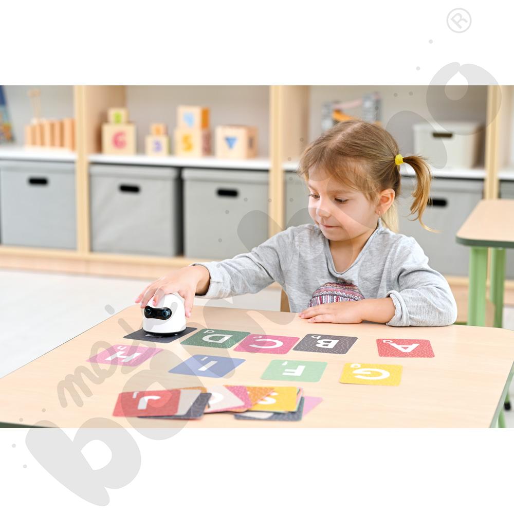 To idealne rozwiązanie dla nauczycieli i rodziców, którzy chcą wspierać naukę poprzez zabawę, bez konieczności korzystania z ekranów i skomplikowanych urządzeń. Robot został wykonany z bezpiecznych i trwałych materiałów, dzięki czemu jest odporny na intensywne użytkowanie i w pełni dostosowany do potrzeb dzieci w wieku przedszkolnym.