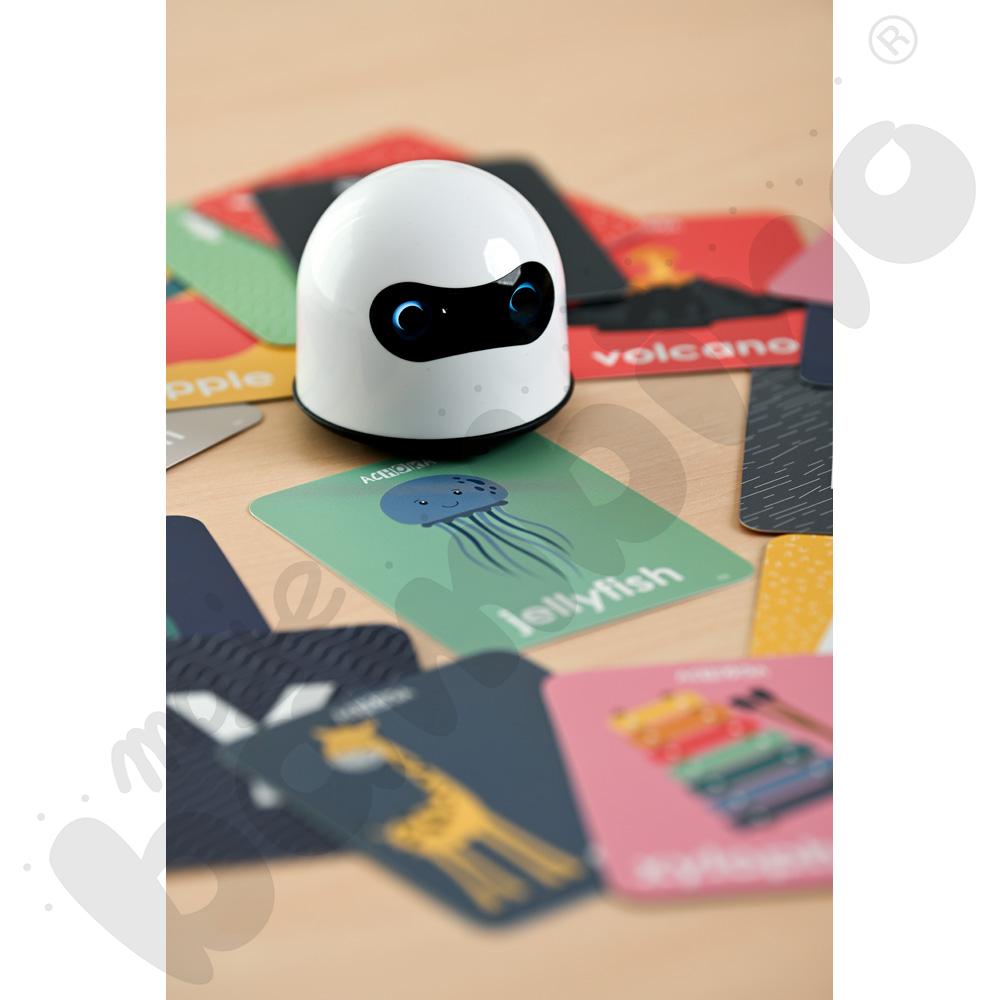 Robot nie posiada ekranu, co sprawia, że jest bezpieczny dla najmłodszych i nie wymaga nauki obsługi – wystarczy go włączyć, aby natychmiast rozpocząć zabawę i naukę. Dzieci rozwijają swoje umiejętności poznawcze poprzez interakcję, dźwięk i obraz, a prosta obsługa sprawia, że robot doskonale sprawdza się zarówno w przedszkolach, jak i edukacji domowej.