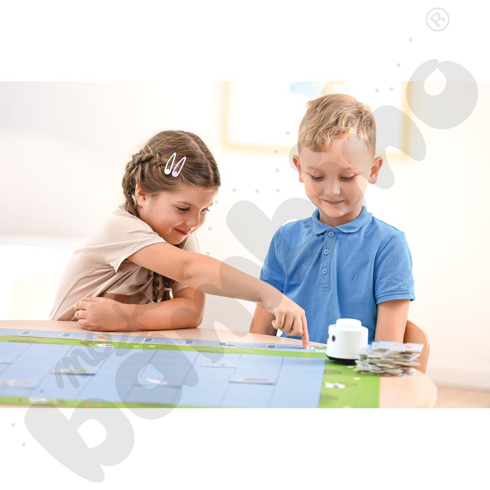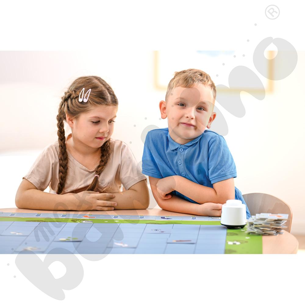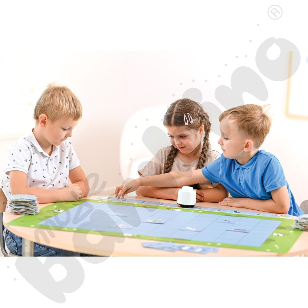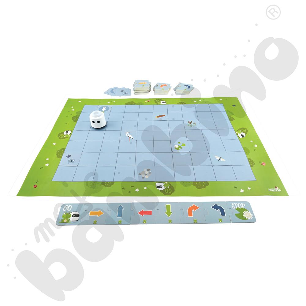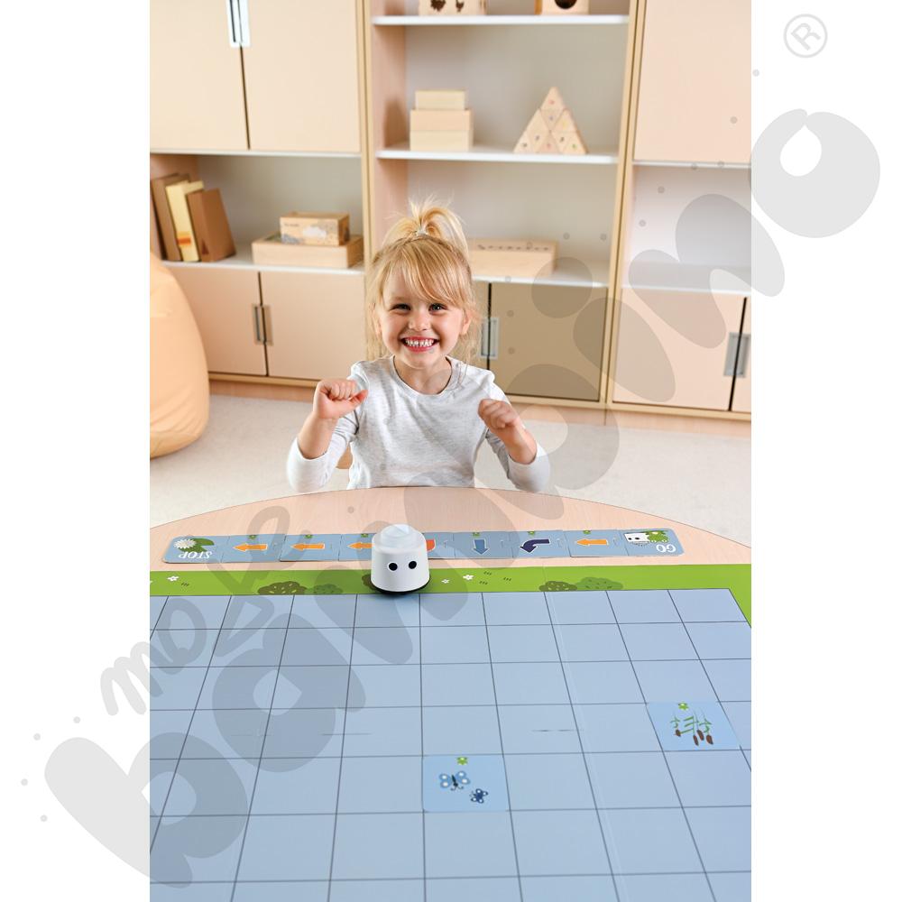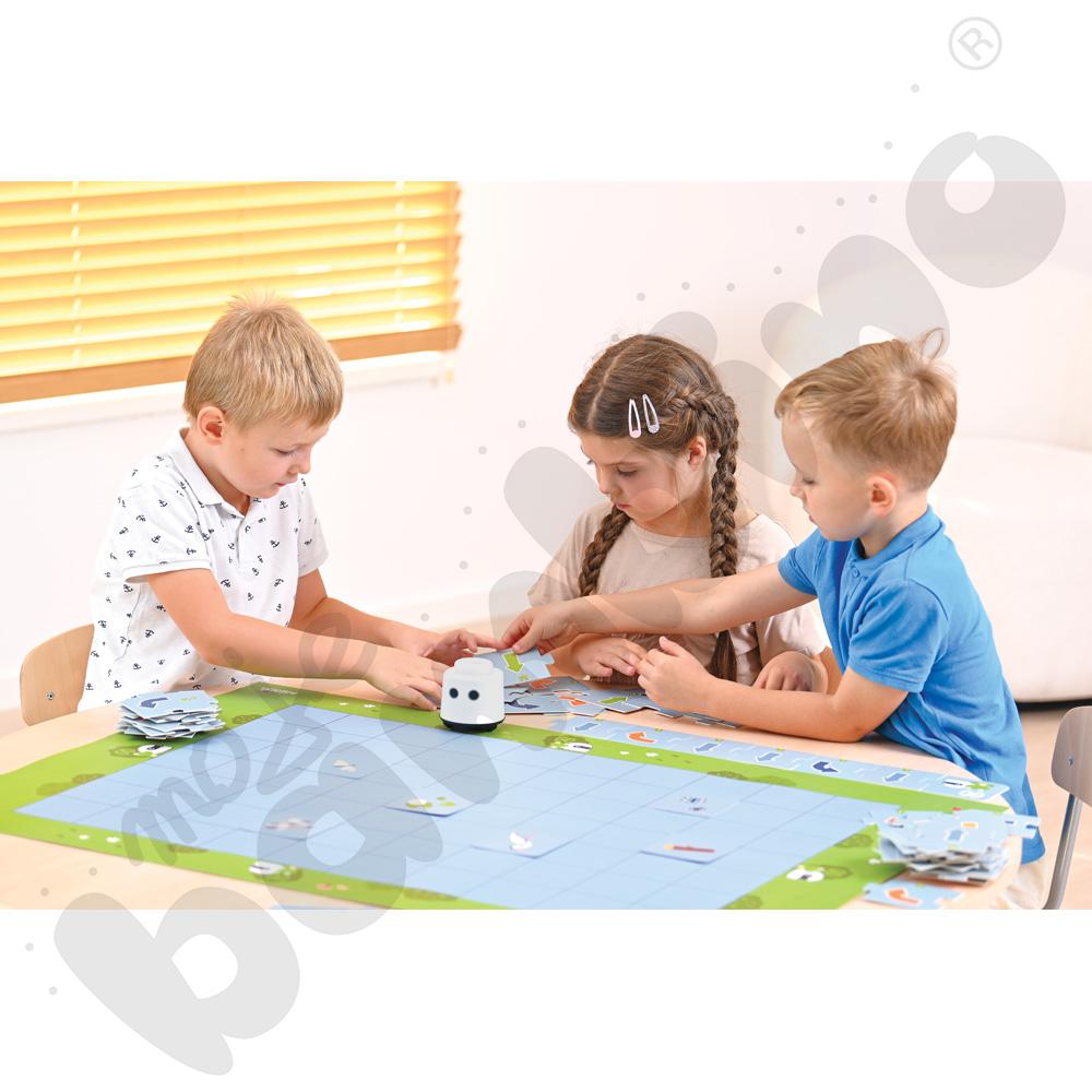 W zestawie znajdują się kolorowe karty–puzzle z instrukcjami, które łączą się w ciąg poleceń dla robota, co rozwija umiejętności sekwencjonowania oraz koncentracji. Dzięki wprowadzeniu kart "Start" i "Meta" możliwe jest tworzenie nieskończonej liczby tras, co utrzymuje zainteresowanie i motywuje do kolejnych prób.