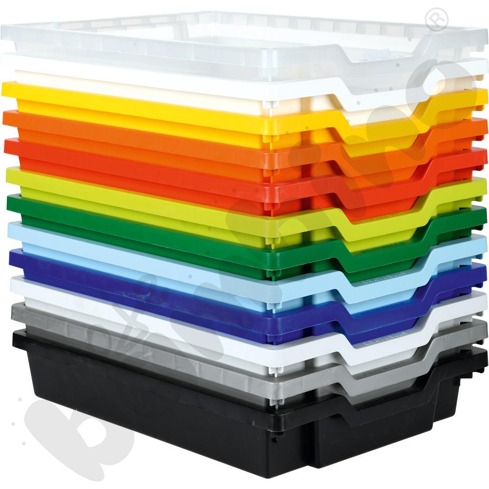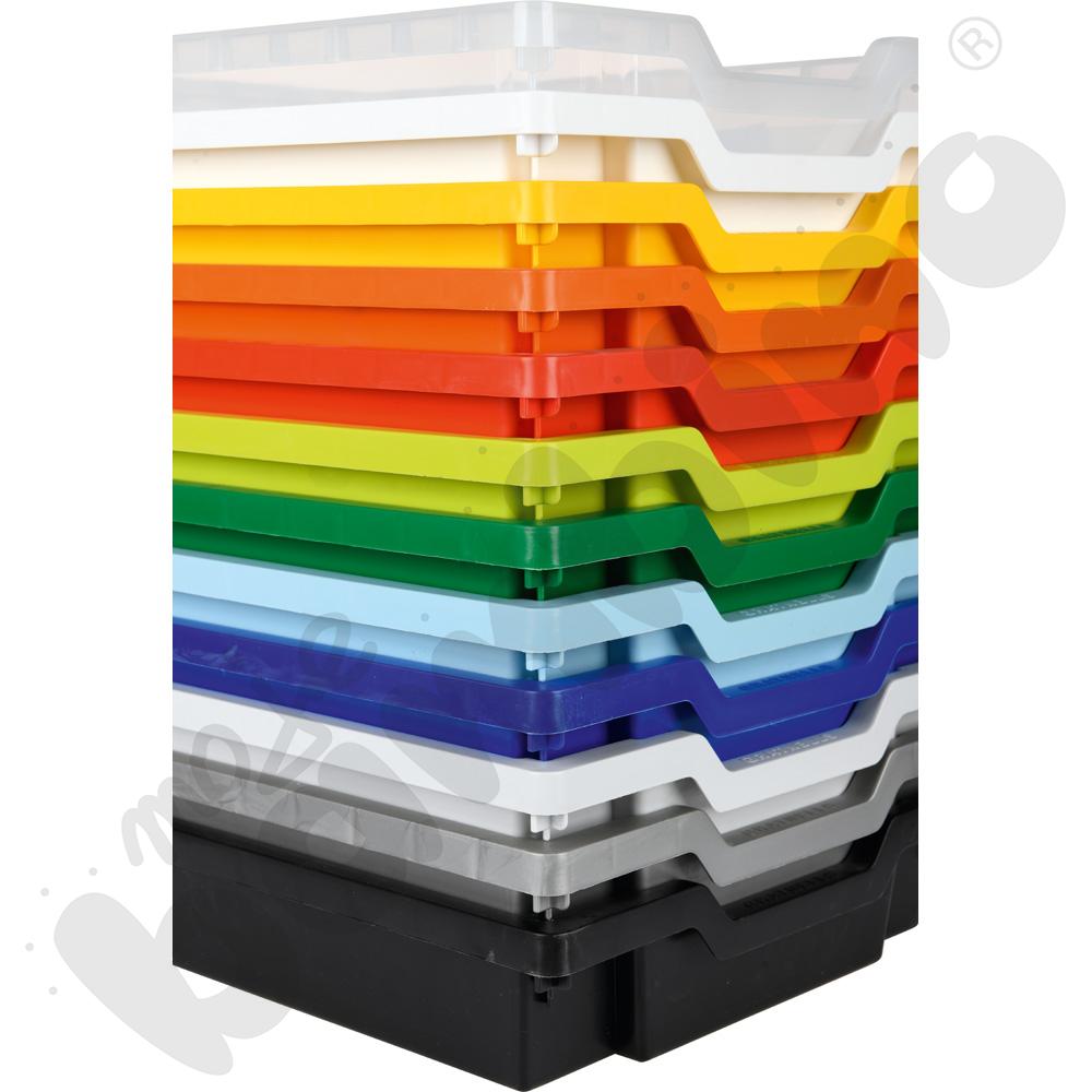 Pojemnik z wytrzymałego tworzywa sztucznego, pasujący do szafek z kolekcji: Flexi, Quadro i Grande. Dostarczany bez prowadnic. • wym. 31,2 x 42,7 x 7,5 cm • wym. wewn. 27 x 35,5 cm • 1 szt.