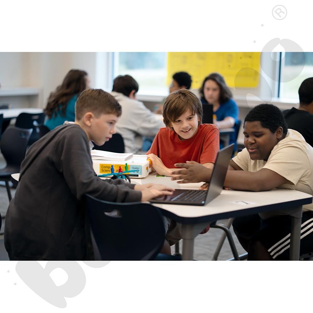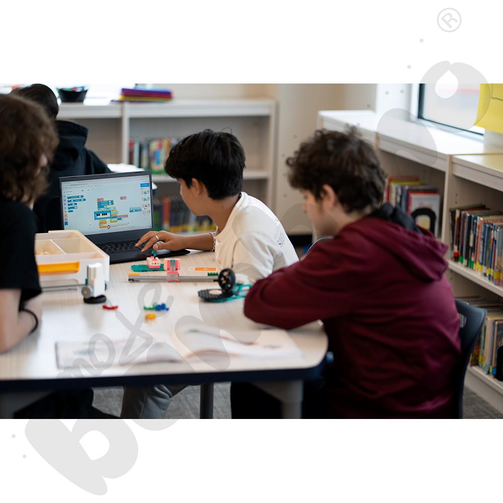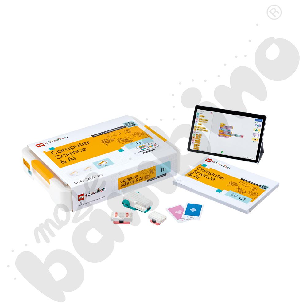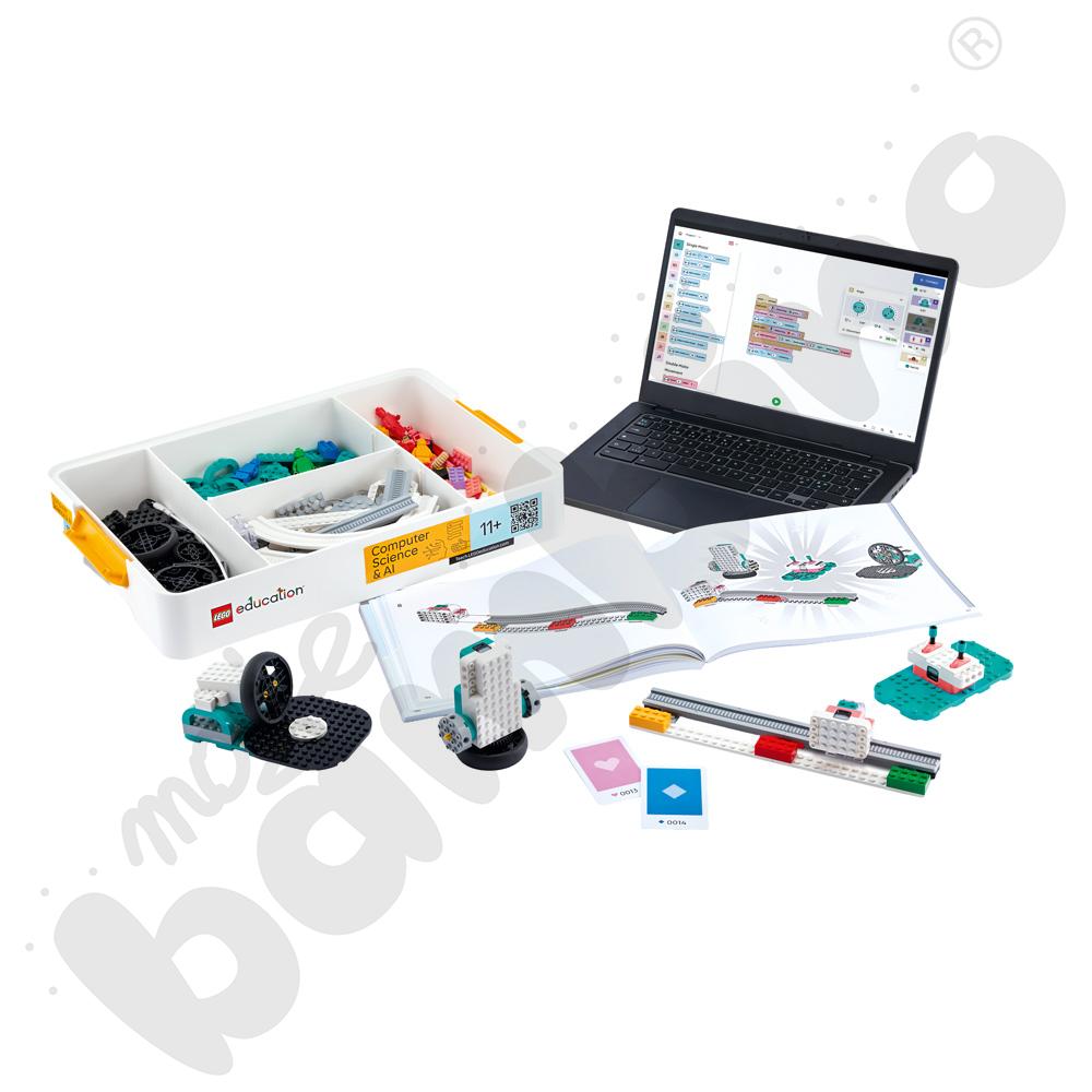 Zestawy dla klas 7-8 szkoły podstawowej i dla szkół ponadpodstawowych LEGO® Education Informatyka i AI dla klas 7-8 to kompleksowe rozwiązanie edukacyjne wspierające realizację podstawy programowej z przedmiotu Informatyka i zagadnień związanych ze sztuczną inteligencją na ostatnim etapie szkoły podstawowej i początku szkoły średniej. Program został zaprojektowany z myślą realizacji w trakcie jednej godziny lekcyjnej i aktywnym udziale wszystkich uczniów, łącząc naukę programowania z pracą zespołową i rozwiązywaniem złożonych problemów. Pakiet obejmuje 30 gotowych lekcji, które wprowadzają uczniów w bardziej zaawansowane koncepcje informatyczne, takie jak programowanie modularne, praca z danymi oraz podstawy działania systemów opartych na AI. Nauka odbywa się poprzez praktyczne działania: budowanie, testowanie i analizowanie własnych rozwiązań.
