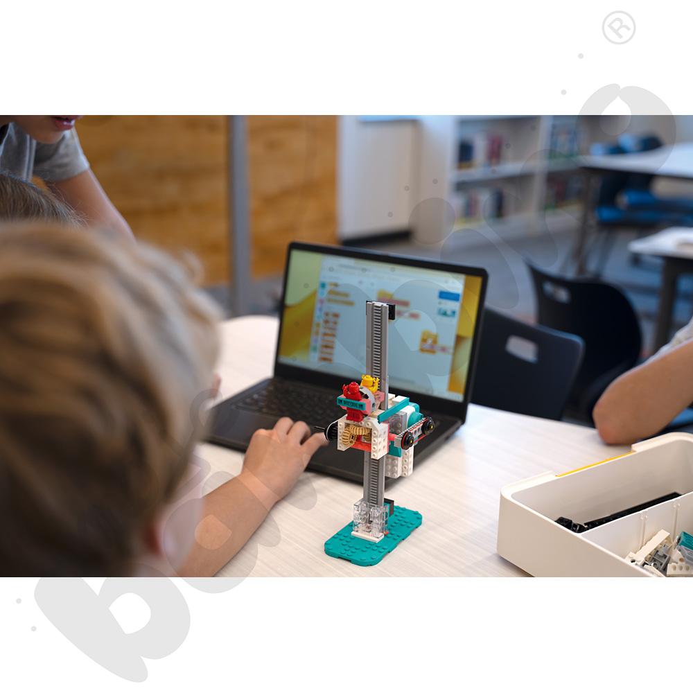 • interaktywny sprzęt: - 1 pojedynczy silnik, - 1 podwójny silnik, - 1 czujnik kolorów, - 1 urządzenie sterujące,