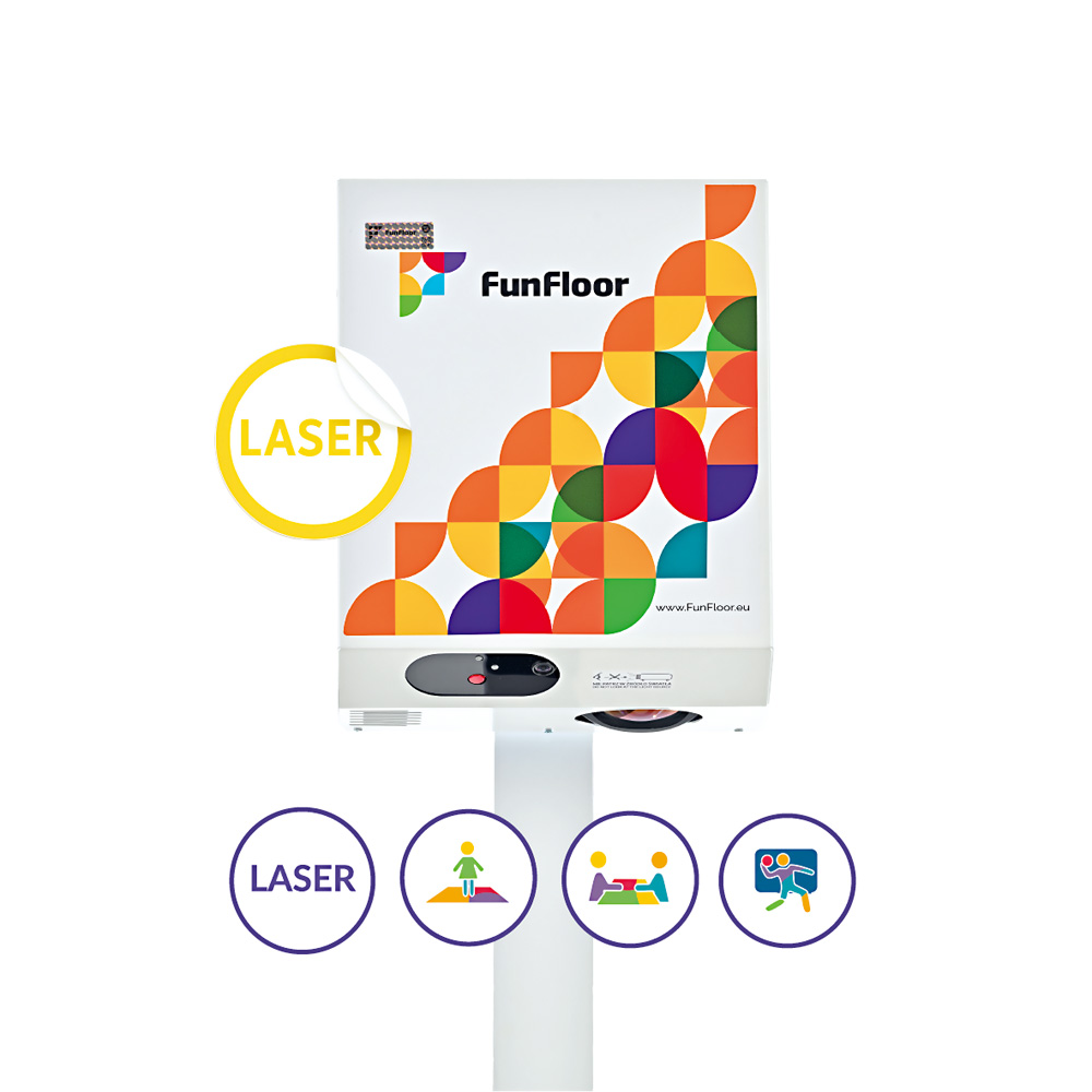 FunFloor Mobilny Premium 3 w 1 to udoskonalona wersja znanego modelu 3 w 1, teraz wyposażona w laserowy projektor o jasności 4000 ANSI lumenów, który gwarantuje jaśniejszy, bardziej kontrastowy i wyraźny obraz.