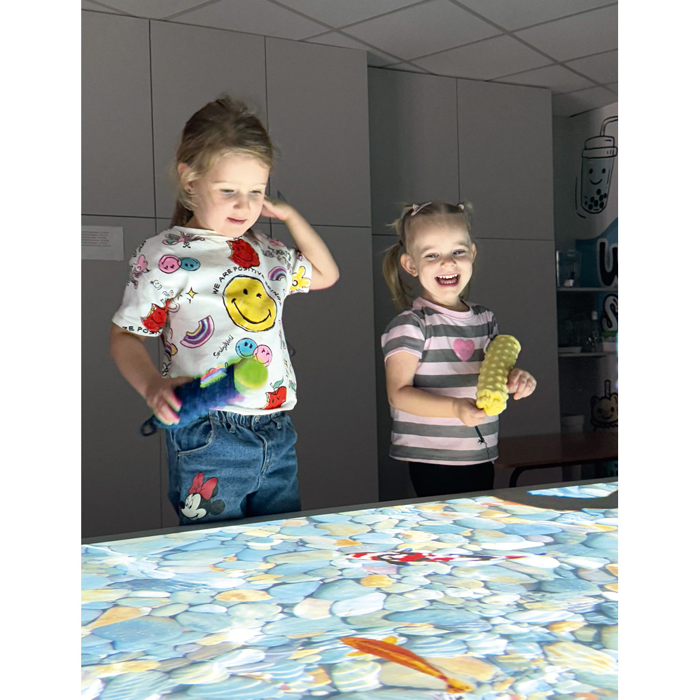 Dzięki temu urządzenie działa perfekcyjnie nawet w dobrze oświetlonych salach, podczas eventów czy pokazów. Zachowując wszystkie zalety wersji podstawowej – trzy tryby projekcji (podłoga, stół i ściana) – model Premium pozwala tworzyć różnorodne scenariusze zabaw i zajęć edukacyjnych.
