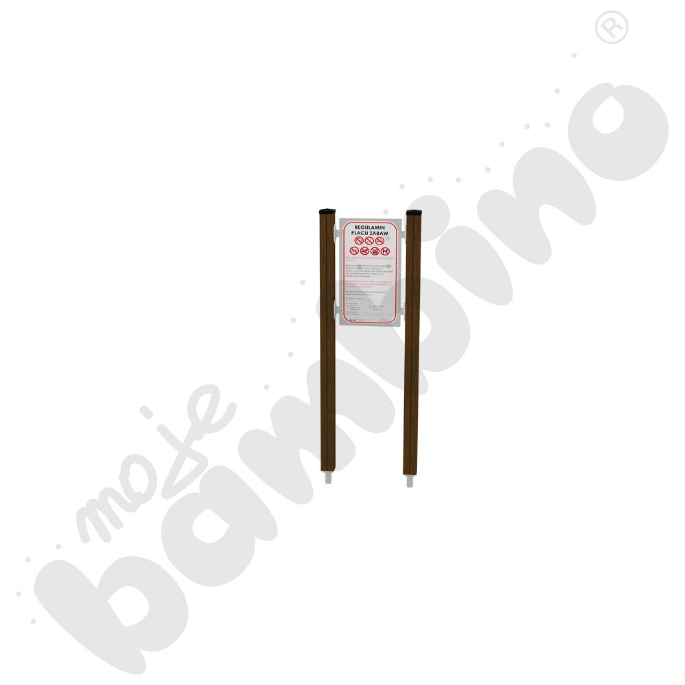 Wyjątkowo trwała, odporna na warunki atmosferyczne, nowoczesna tablica reklamowo - informacyjna. Można umieścić na niej dowolną reklamę lub regulamin placu zabaw. Idealnie odnajdzie się w parkach, skwerach, punktach informacyjnych czy na placach zabaw.