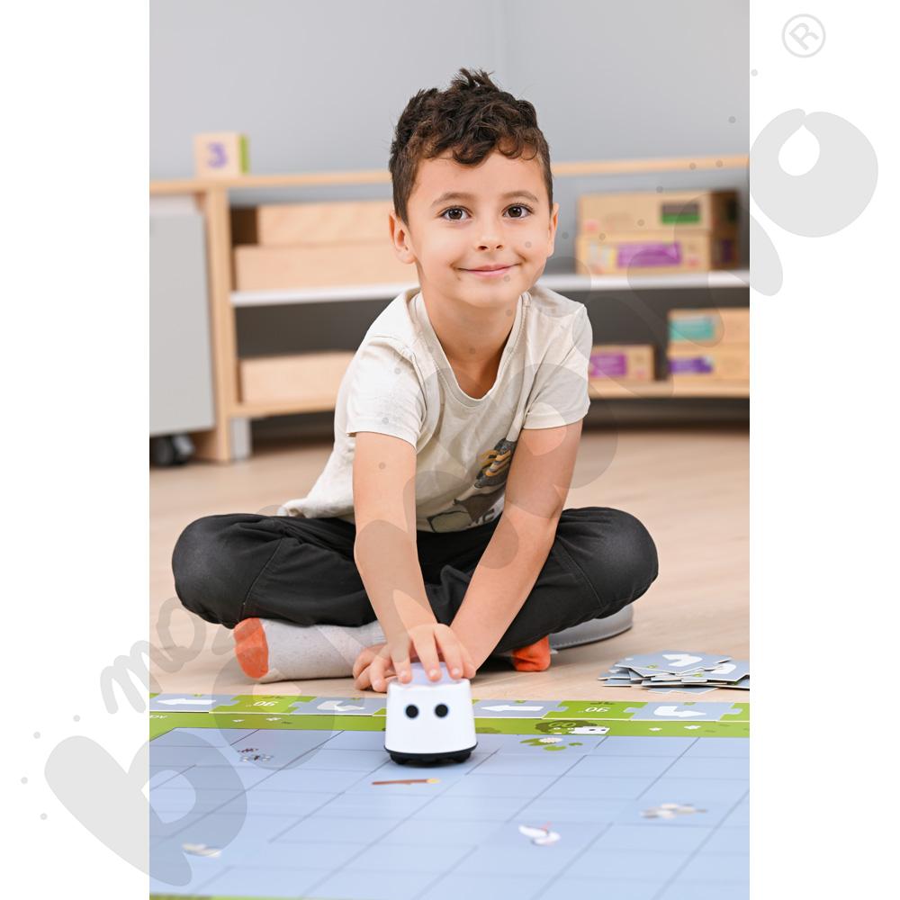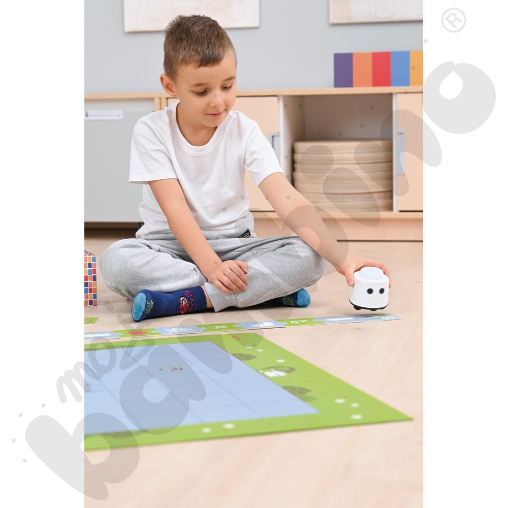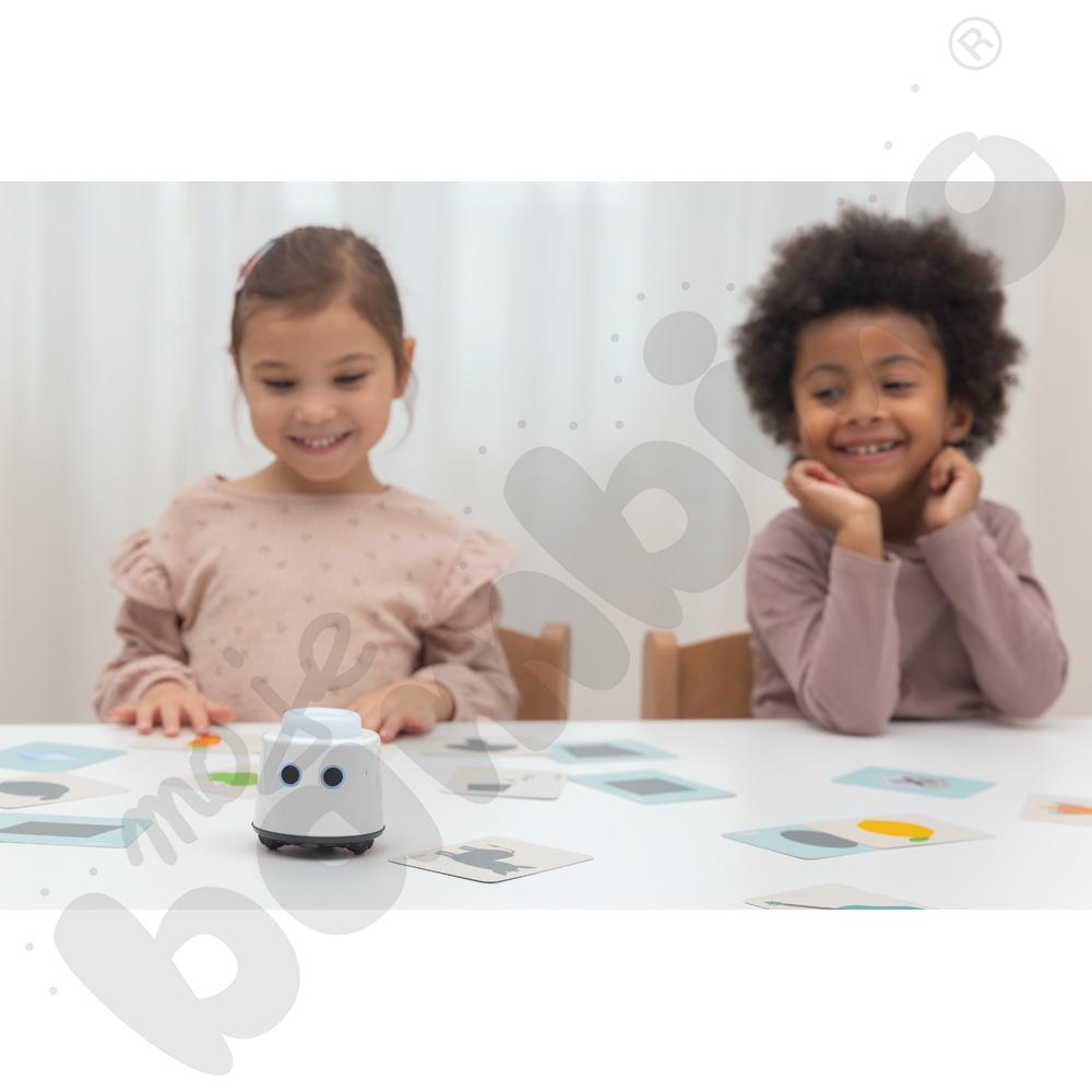 LOGI miniBot wprowadza dzieci w świat przyrody, matematyki, języków obcych, sztuki i programowania poprzez interaktywne zestawy tematyczne. Każda aktywność to połączenie atrakcyjnych ilustracji, narracji audio i fizycznej interakcji z robotem, co angażuje wzrok, słuch i dotyk.