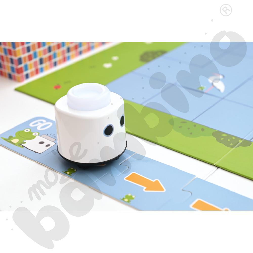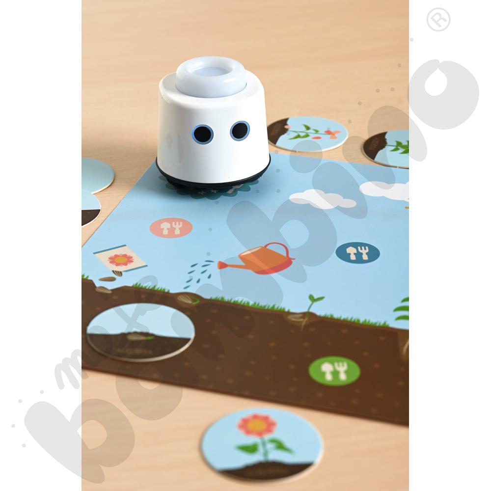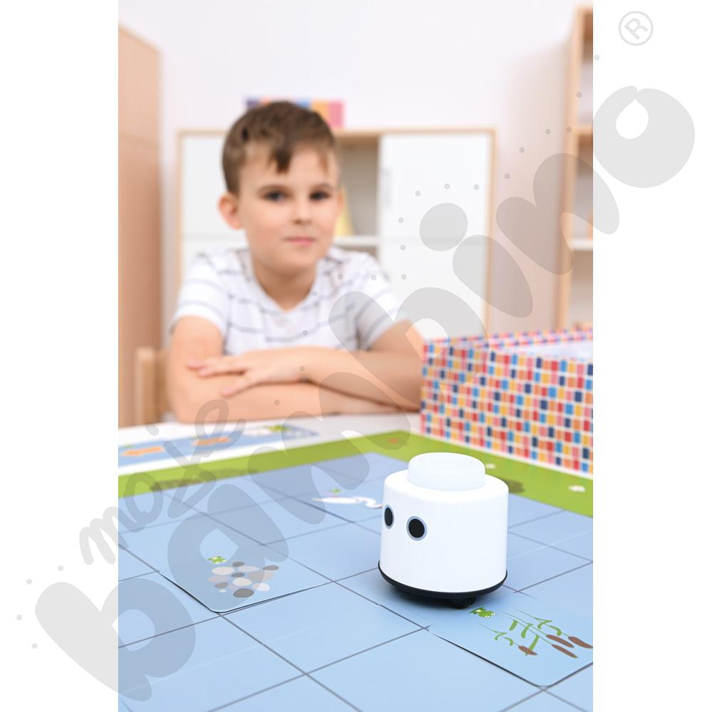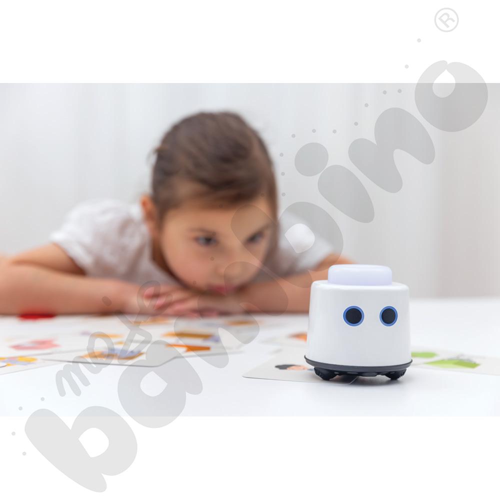 LOGI miniBot wprowadza dzieci w świat przyrody, matematyki, języków obcych, sztuki i programowania poprzez interaktywne zestawy tematyczne. Każda aktywność to połączenie atrakcyjnych ilustracji, narracji audio i fizycznej interakcji z robotem, co angażuje wzrok, słuch i dotyk.