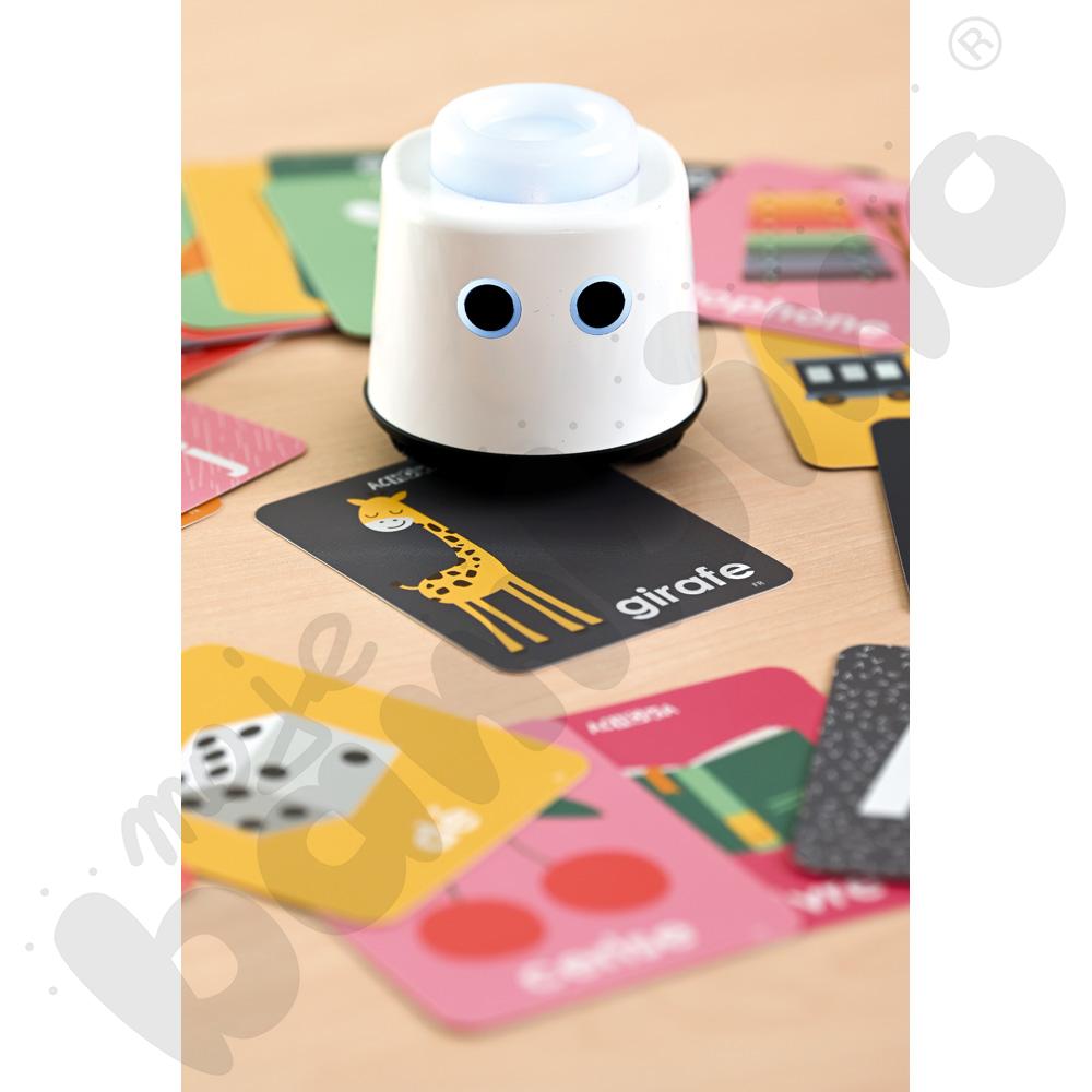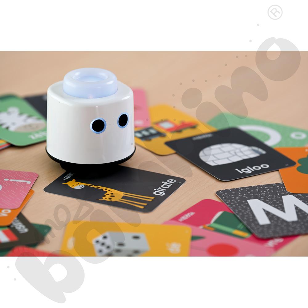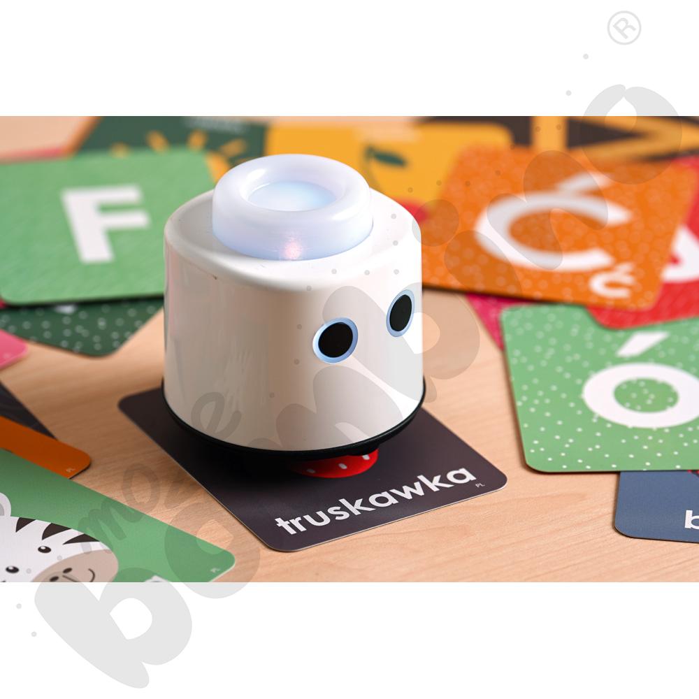 Robot działa natychmiast po włączeniu – bez ekranów, aplikacji czy skomplikowanej konfiguracji. Wystarczy go uruchomić, a zabawa i nauka zaczynają się automatycznie. Dzięki funkcji rozpoznawania kart tematycznych (dostępnych osobno), LOGI miniBot odtwarza poprawną wymowę słów w języku polskim, angielskim, niemieckim i francuskim, wspierając rozwój językowy dzieci.