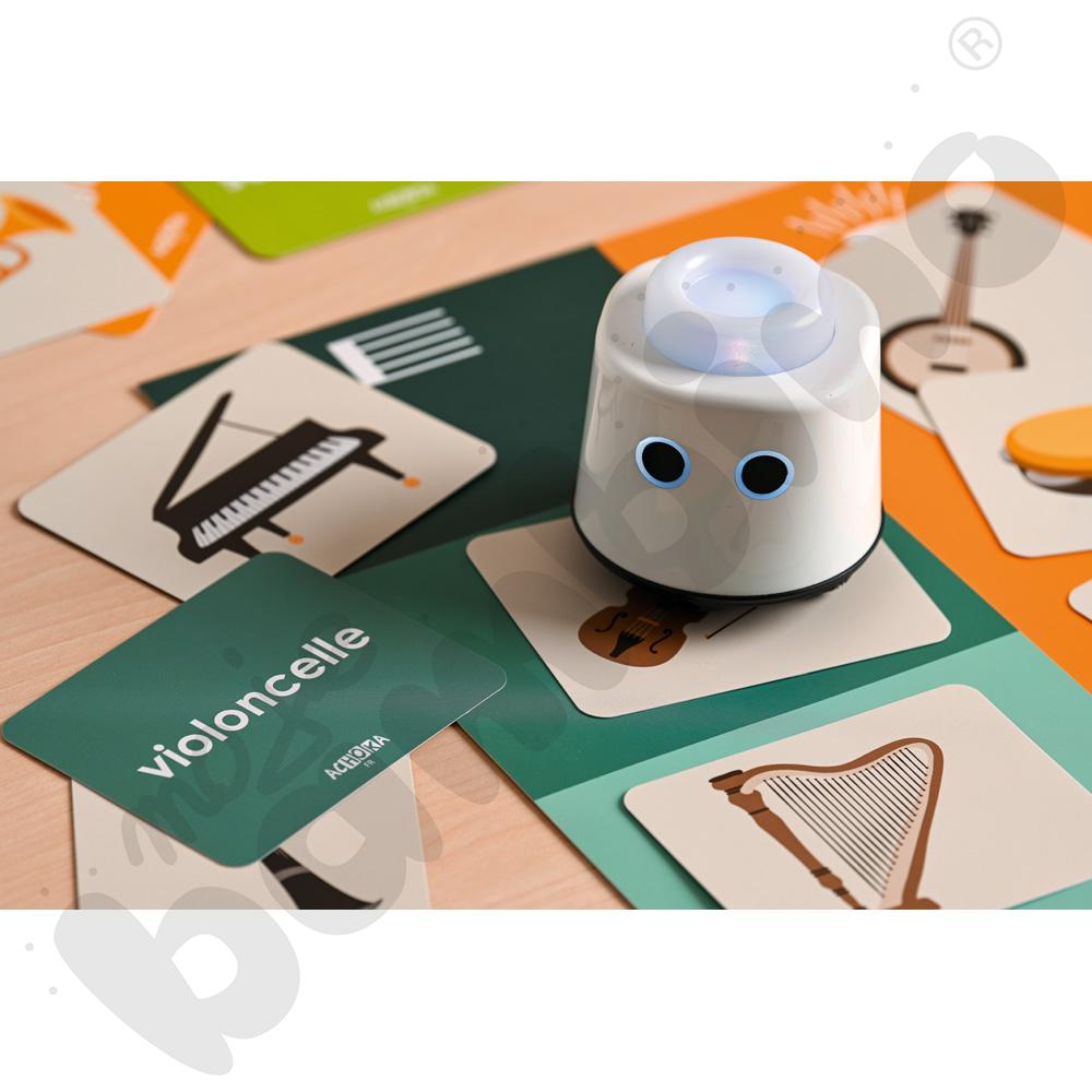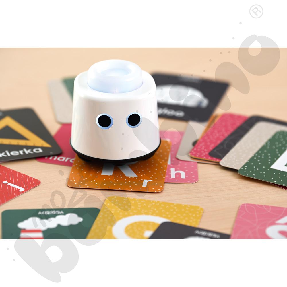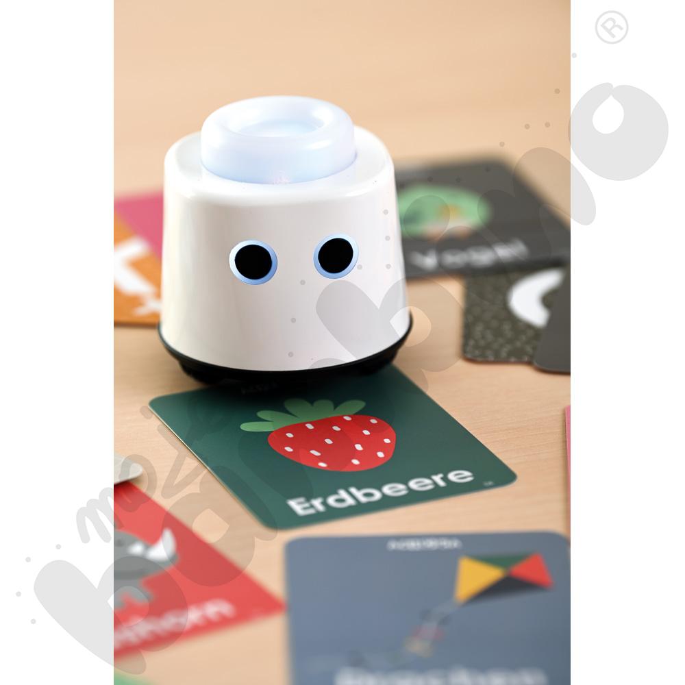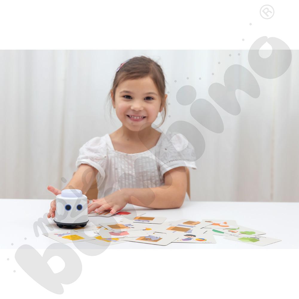 Robot działa natychmiast po włączeniu – bez ekranów, aplikacji czy skomplikowanej konfiguracji. Wystarczy go uruchomić, a zabawa i nauka zaczynają się automatycznie. Dzięki funkcji rozpoznawania kart tematycznych (dostępnych osobno), LOGI miniBot odtwarza poprawną wymowę słów w języku polskim, angielskim, niemieckim i francuskim, wspierając rozwój językowy dzieci.