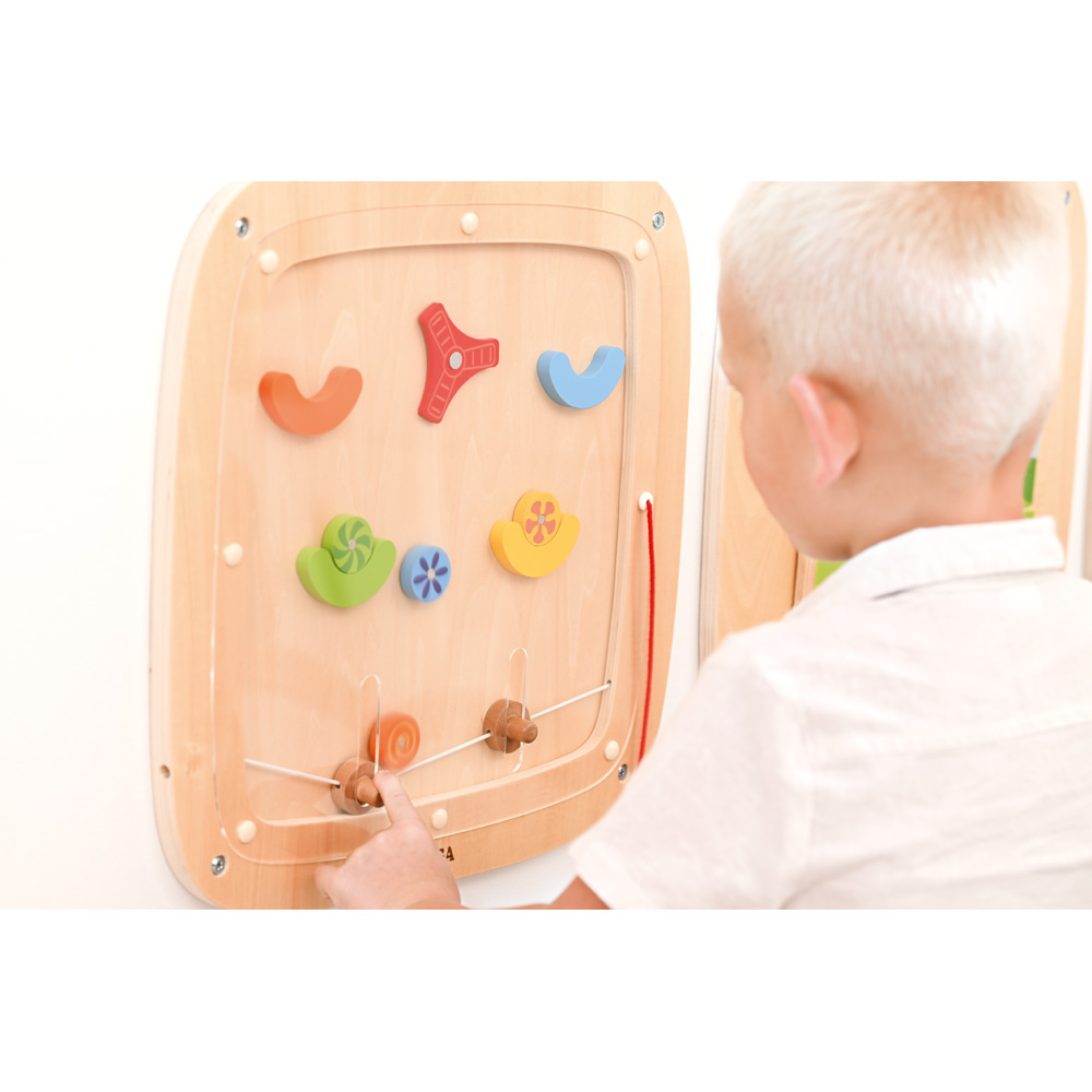 Edukacyjny panel ścienny wykonany z wysokiej jakości sklejki brzozowej. Wspiera rozwój motoryki małej, zmysłów, zdolności poznawczych oraz emocjonalnych. Panel jest modułowy, łatwy w montażu i doskonale sprawdza się w przestrzeniach edukacyjnych, tworząc atrakcyjne i funkcjonalne środowisko do nauki poprzez zabawę.