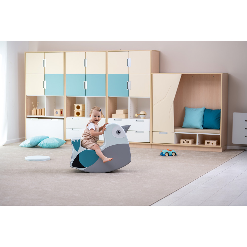 Sympatyczne bujaki o stabilnej i bezpiecznej konstrukcji będą zarówno świetnym miejscem do odpoczynku, jak i ozdobą każdej sali. Pokrycie wykonane z trwałej tkaniny, łatwej do utrzymania w czystości.