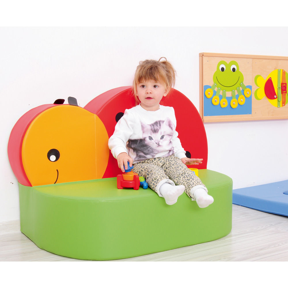 Wygodna i stabilna, kolorowa kanapa z pianki, pokryta wytrzymałą tkaniną, łatwą do utrzymania w czystości. Tkanina nie zawiera ftalanów. • wys. siedziska 23,5 cm