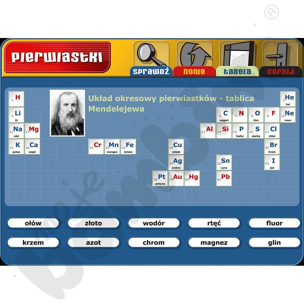 Tytuł obejmuje ćwiczenia interaktywne z różnych działów chemii, takich jak np.: budowa atomu, elektronowe modele molekuł, okresowy układ pierwiastków, tworzenie wzorów chemicznych i równań, tworzenie związków organicznych itp.