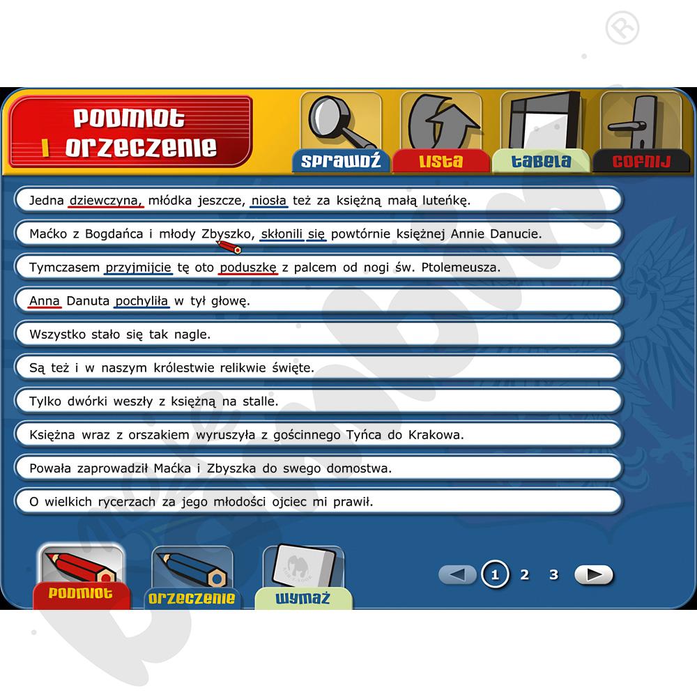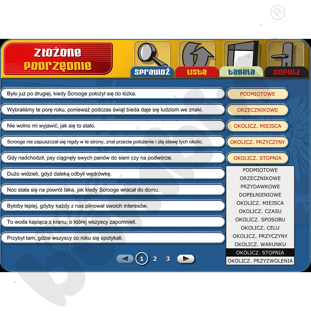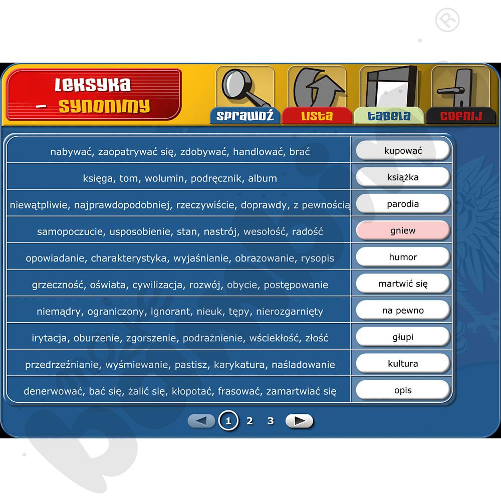 Multimedialny program edukacyjny przeznaczony dla uczniów klas 7-8 szkoły podstawowej. Wspiera ćwiczenie oraz doskonalenie języka polskiego w zakresie składni, frazeologii, słowotwórstwa, ortografii i interpunkcji.