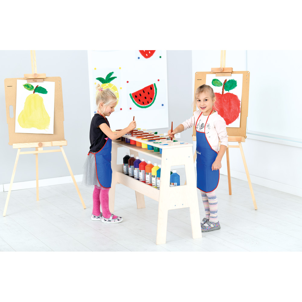 Wśród przygotowanych przez nas propozycji znalazły się różnego rodzaju elementy, które mogą składać się na kącik plastyczny dla dziecka. Wśród nich należy wyróżnić między innymi stojaki na farby, sztalugi, wózki plastyczne na kółkach czy szafki ekspozycyjne na prace małych twórców. Ponadto w asortymencie znalazły się szafki w różnych kolorach, które mogą służyć do przechowywania wszelkich akcesoriów malarskich. Wszystkie oferowane produkty adresowane do placówek dziecięcych to dobre jakościowo elementy wyposażenia, które charakteryzują się starannym wykonaniem, a także funkcjonalnością.